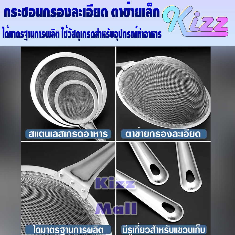 (พร้อมส่ง) กระชอนสแตนเลสแท้ 304 (ขนาด 17.50 ซม.) Kizz Mall THAILAND กระชอนกรองน้ำมัน ตะแกรงร่อนแป้ง