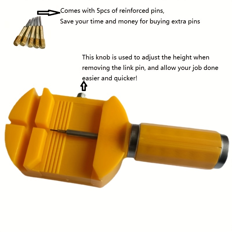 Pemobetong Jam Tangan Besi เครื่องมือซ่อมนาฬิกาสร้อยข้อมือนาฬิกาปรับสายนาฬิกา Link Pin Removal เครื่องมือ: 1 ชิ้น 5 หมุดเสริมและปรับความสูงได้คุณสมบัติ
