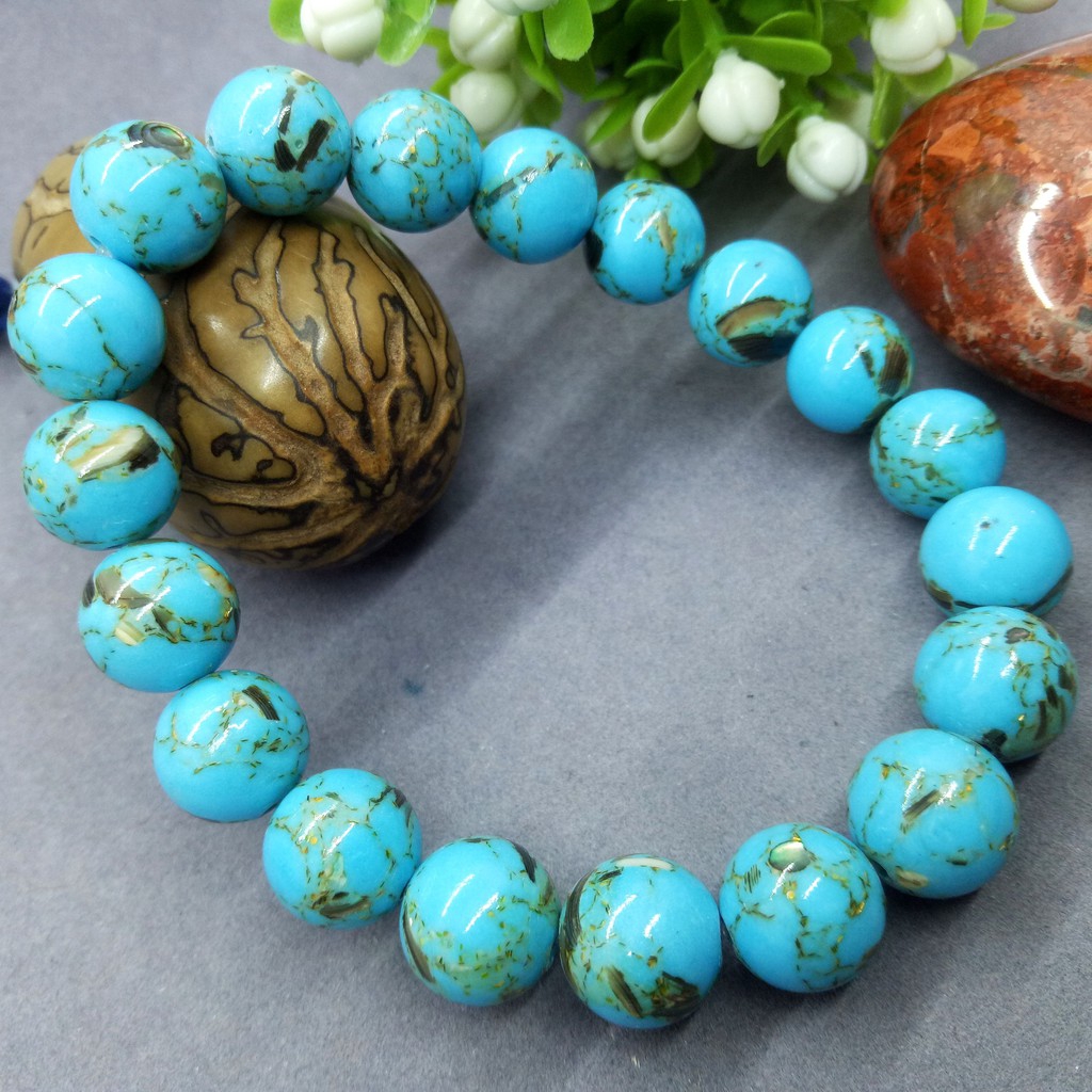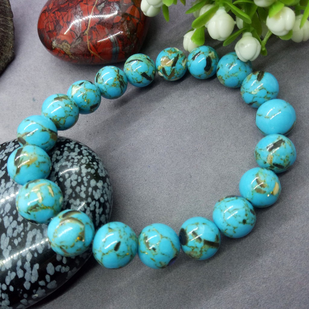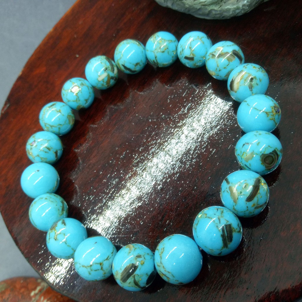 สร้อยข้อมือลูกปัดไข่มุกเทอคอยส์และแม่สีฟ้าสีน้ำเงินสำหรับเป็นของขวัญผู้หญิงขายส่ง
