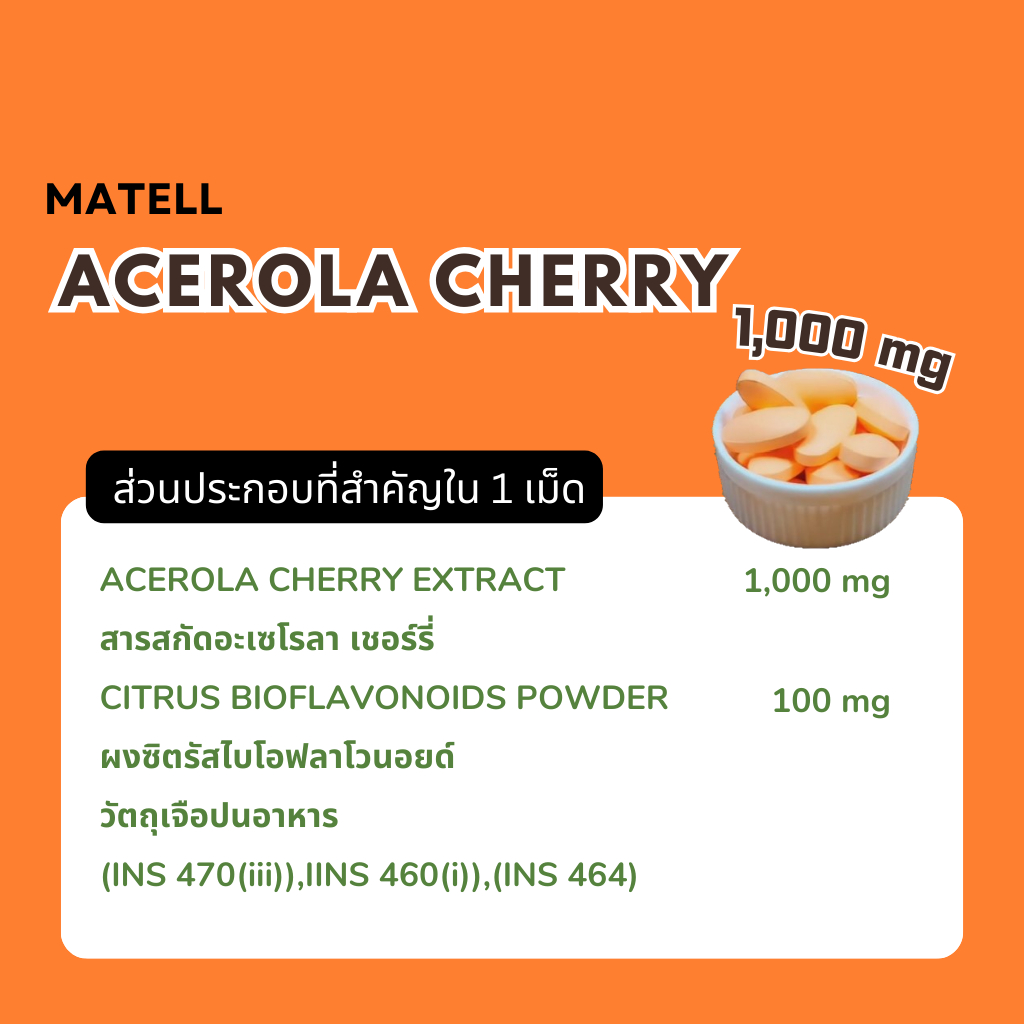 MATELL Acerola Cherry 1000 mg 50 Tablets อะเซโรล่า เชอร์รี่ 1000 มก 50 เม็ด