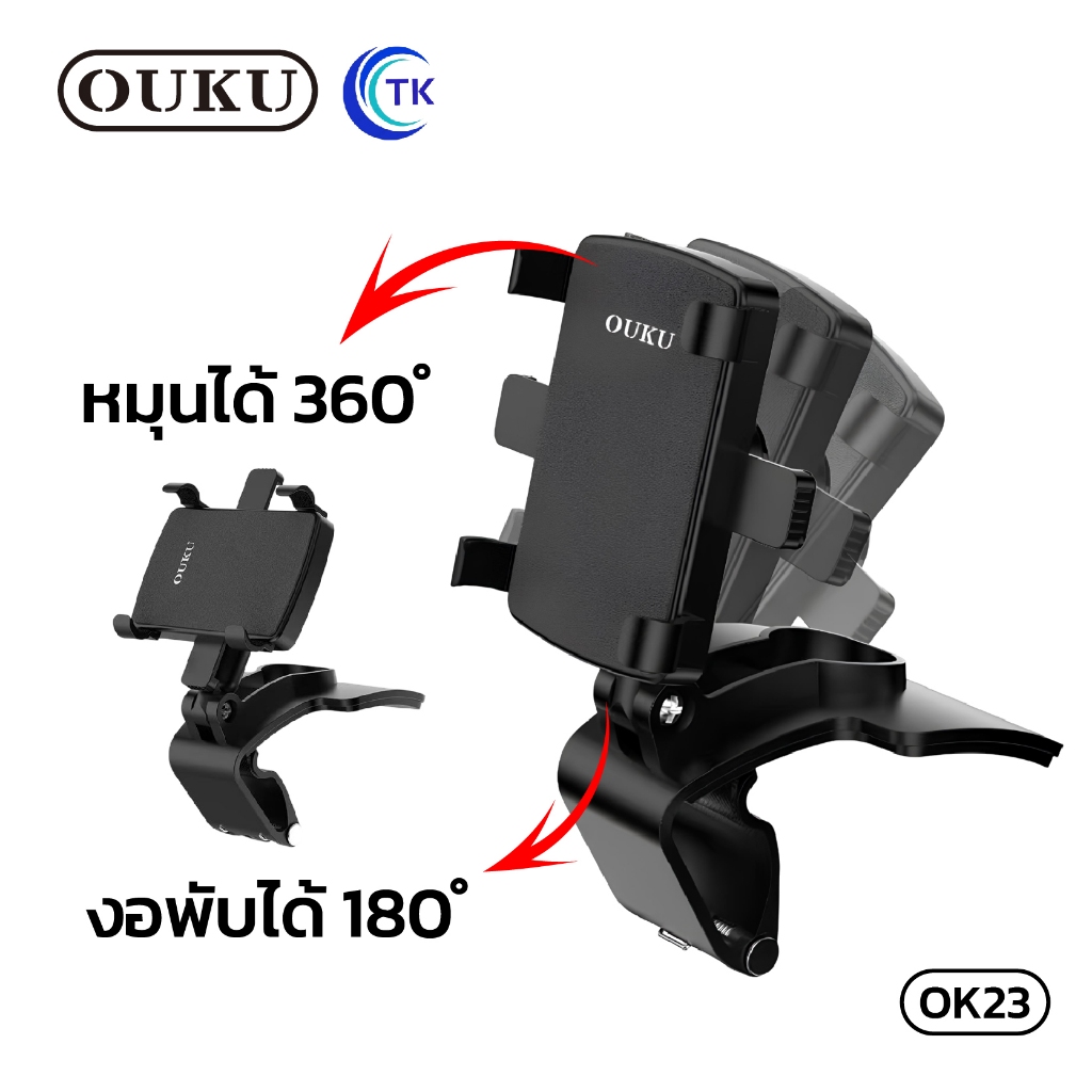 OUKU รุ่น OK23 ขาตั้งโทรศัพท์ในรถยนต์ ที่ยึดมือถือ ที่วางโทรศัพท์บนแผงหน้าปัดรถยนต์&ยึดกระจกมองหลัง หมุนได้360องศา