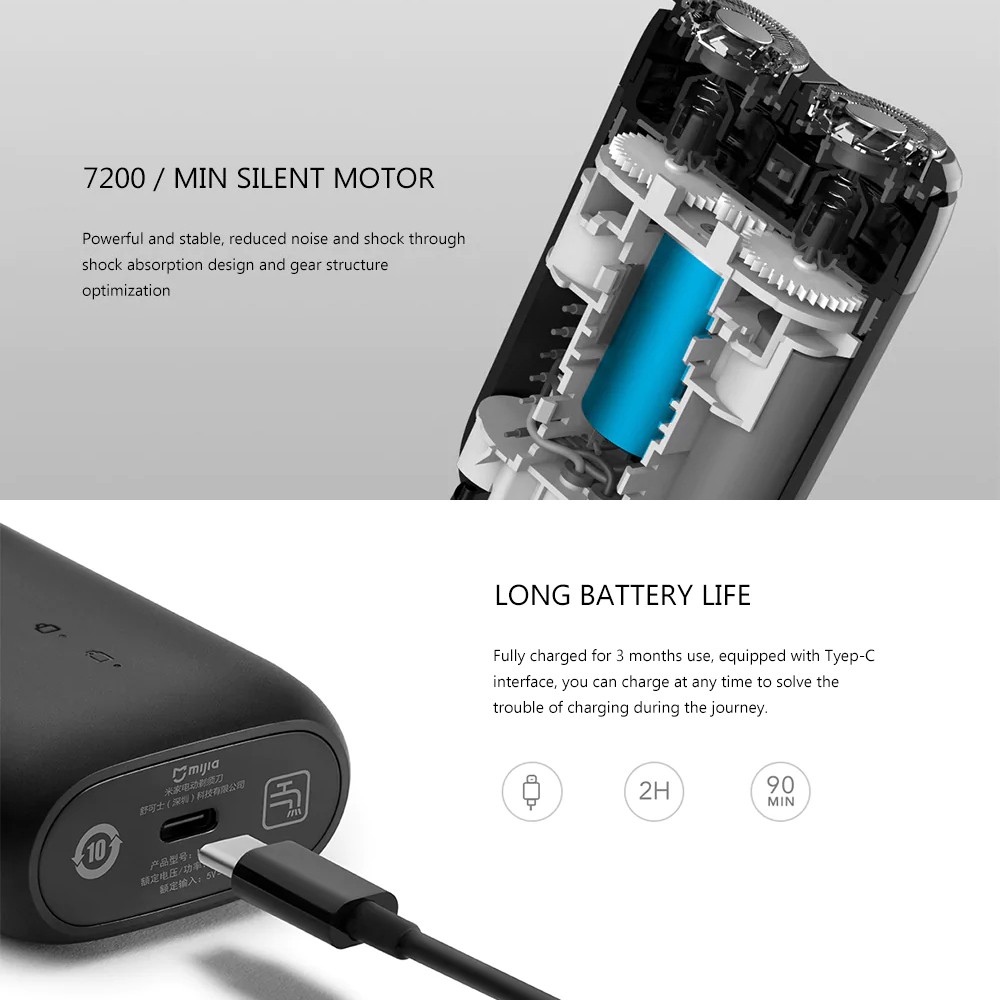 Mijia เครื่องโกนหนวดไฟฟ้า หัวใบมีดคู่ กันน้ำ IPX7 USB Type-C