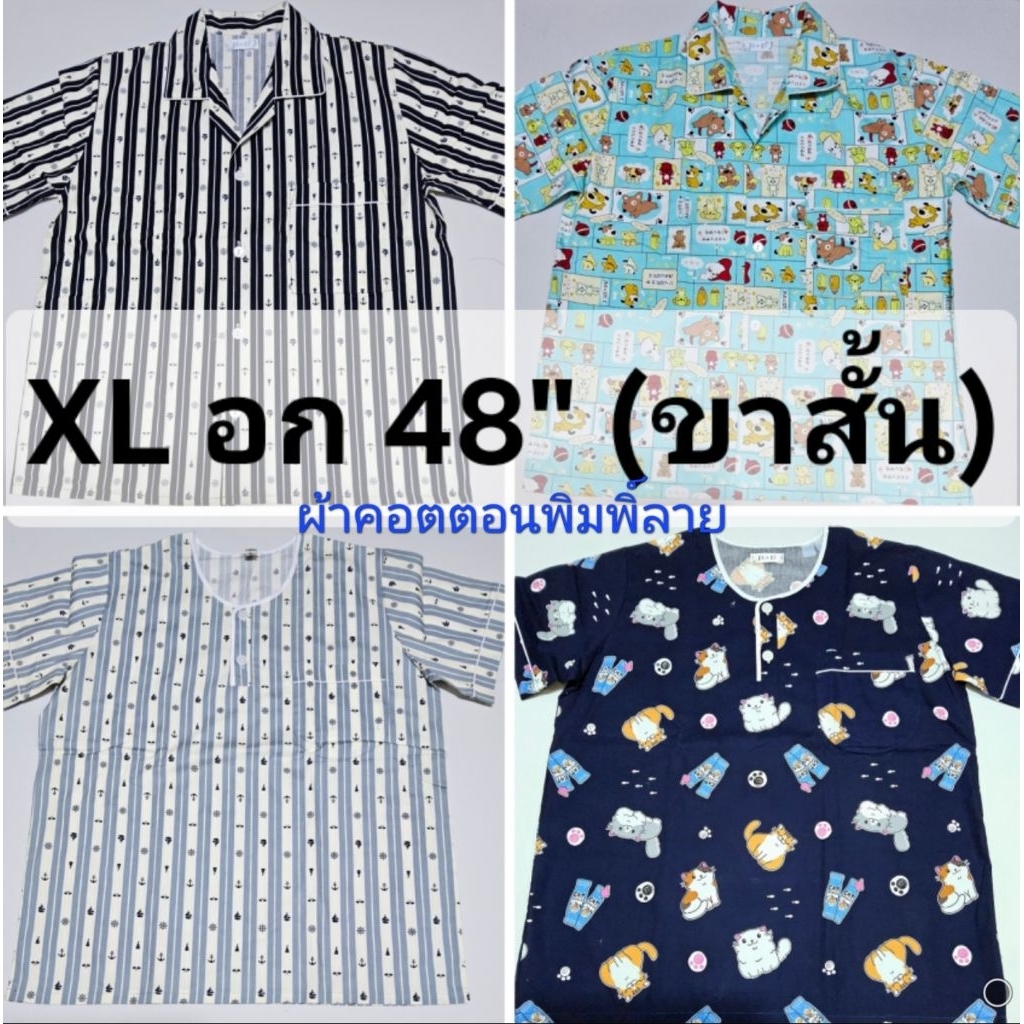 PP ชุดนอน P+P ไซร์XL อก48" แขนสั้น-ขาสั้น คอปก-คอกลม ผ้าคอตตอตพิมพิ์ลาย