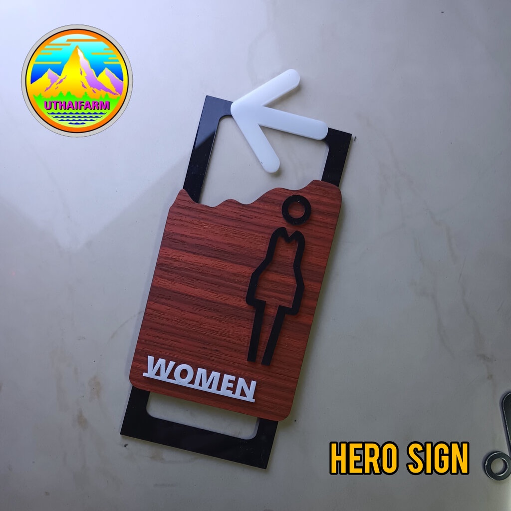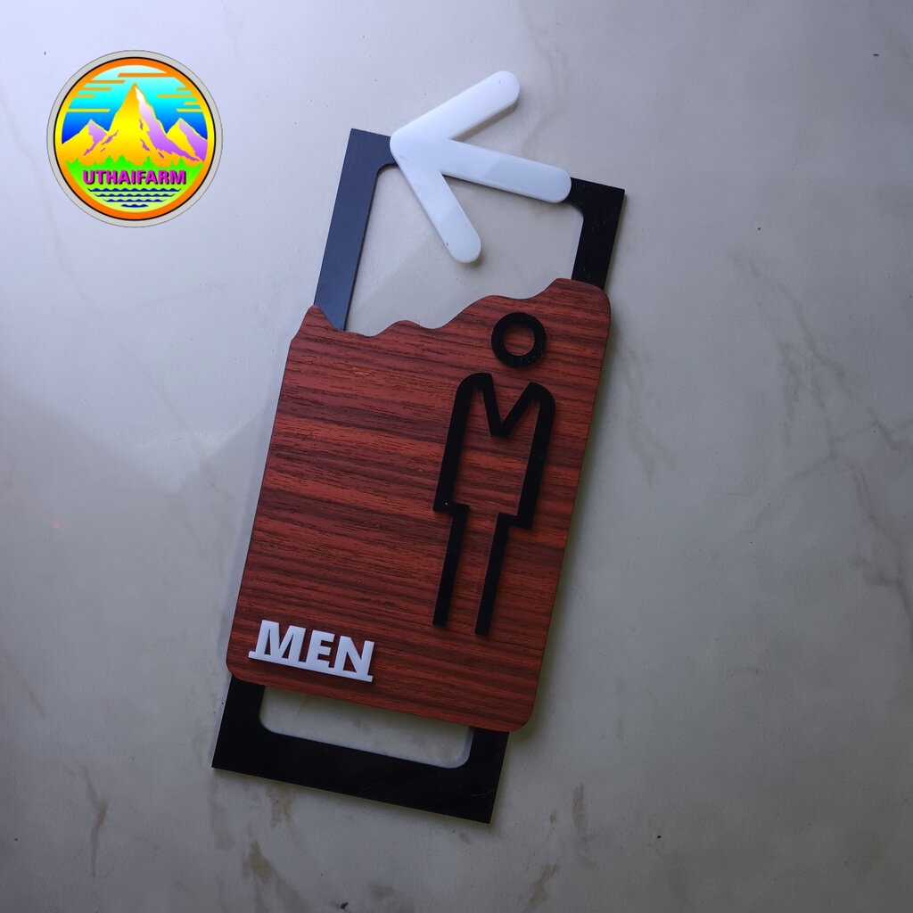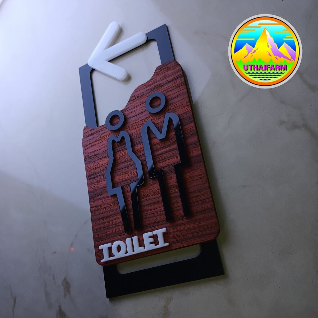 ป้ายห้องน้ำ สไตล์กราฟิกอาร์ต ป้ายแนวตั้ง อะคริลิเลเซอร์ ประสมไม้อัดจริง มีมิตินูน 3 ชั้น [HIT 03 WO... *M-ONE DESIGN
