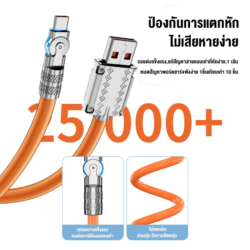 สายเคเบิลข้อศอก หมุนได้ 180° สายชาร์จ หมุนได้ 180 องศา ชาร์จเร็ว 180 องศา° สายชาร์จ 120W 6A แบบหมุนได้ ชาร์จเร็วมาก
