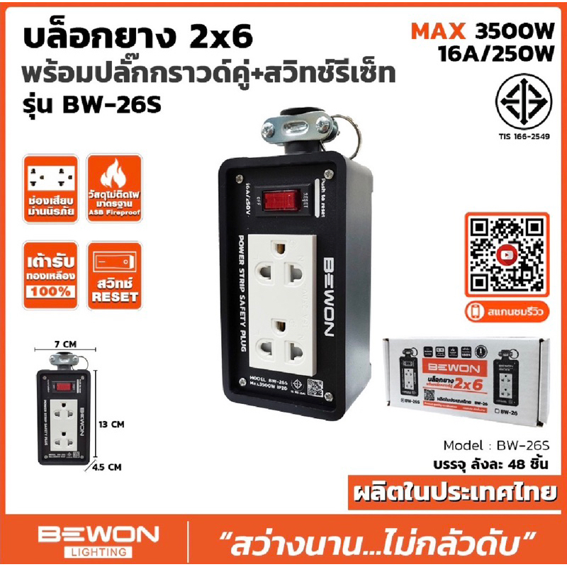 BEWON บล็อกยาง พร้อมเต้ารับ พร้อมสวิตช์ควบคุมไฟ เบรคเกอร์กันไฟรั่ว 3500w ปลั๊กพ่วง บ็อกยาง บล็อคยาง ปลั๊กสนาม ปลั๊กยาง