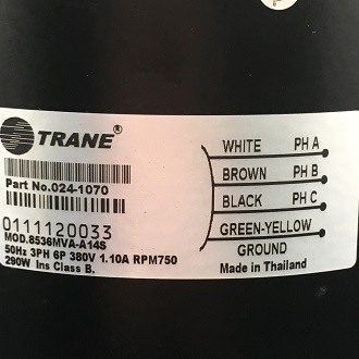 มอเตอร์พัดลมคอยล์ร้อน TRANE มอเตอร์แอร์ มอเตอร์ รุ่น 024-1070 024-1071 (MOTOR FOR TTA075 150 BD) ใช้รุ่นนี้ 024-1043 แทน