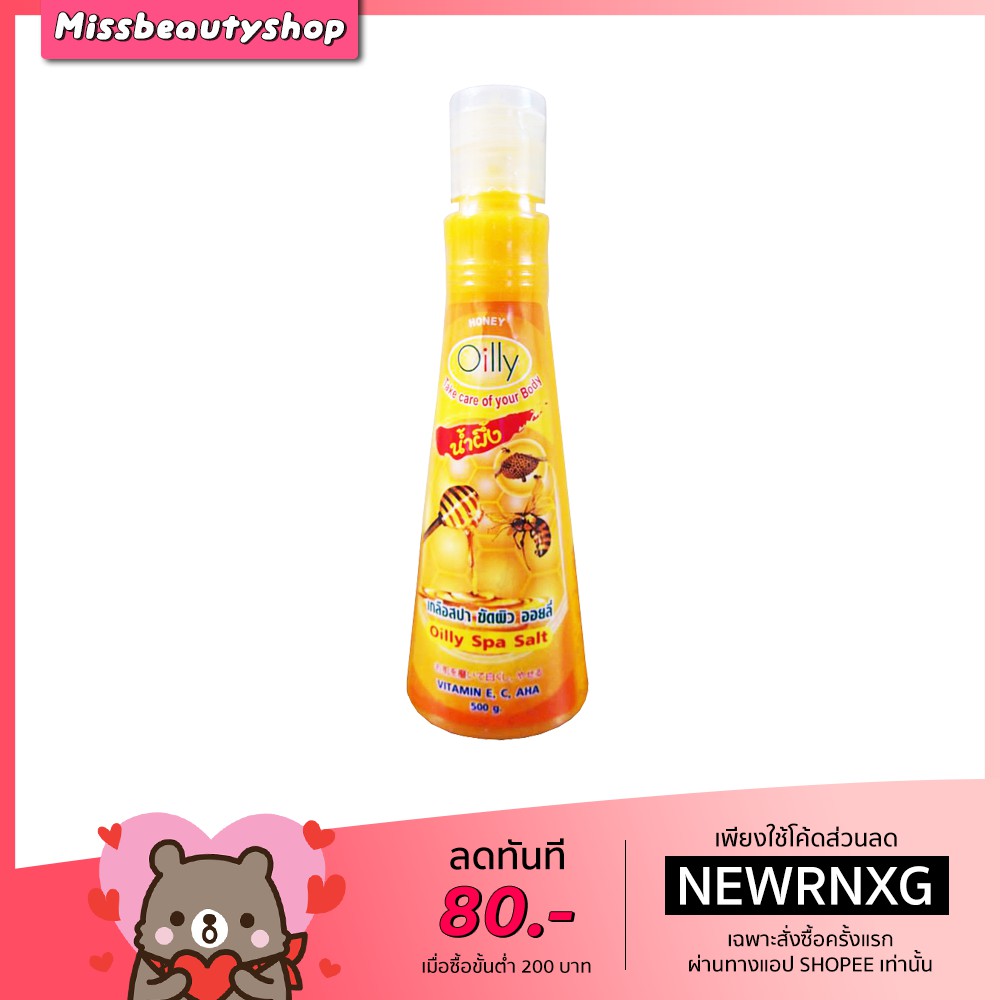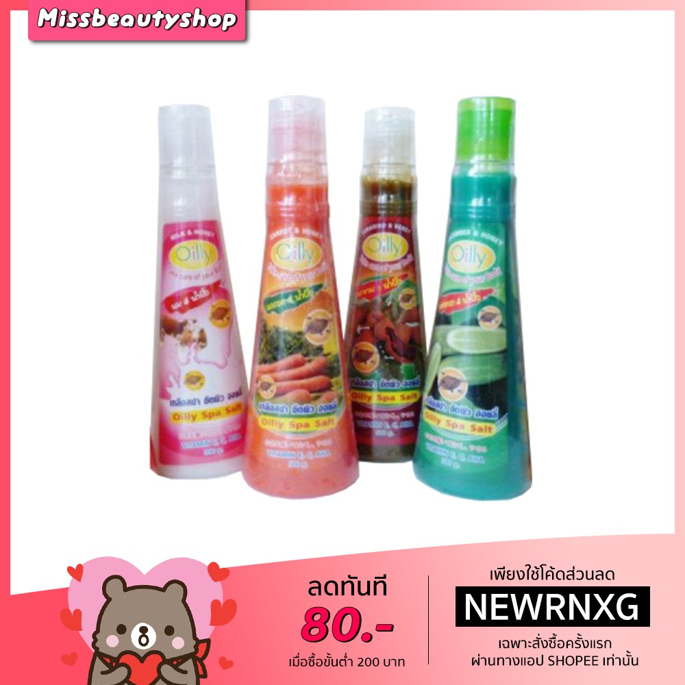 เกลือสปาขัดผิว ออยลี่ เกลือขัดผิว มี 7 สูตร ขมิ้น มะเขือเทศ มะขาม ผลไม้รวม นม น้ำผึ้ง ส้ม Oilly Spa Salt