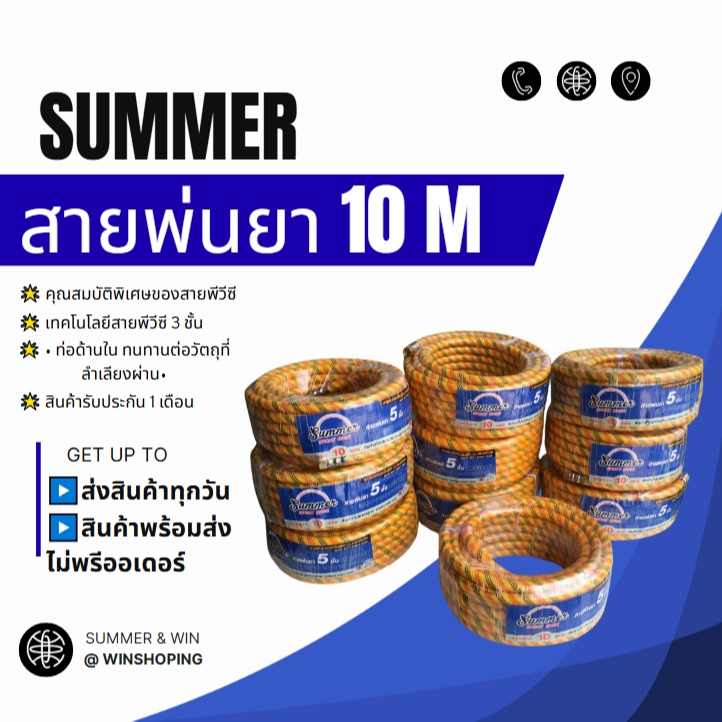 สายพ่นยาแรงดันสูง รุ่นหนาพิเศษ ยี่ห้อ Summer หนา ฺ5 ชั้น ความยาว 10 เมตร ✅ถูกที่สุด ✅เสริมเชือกถัก