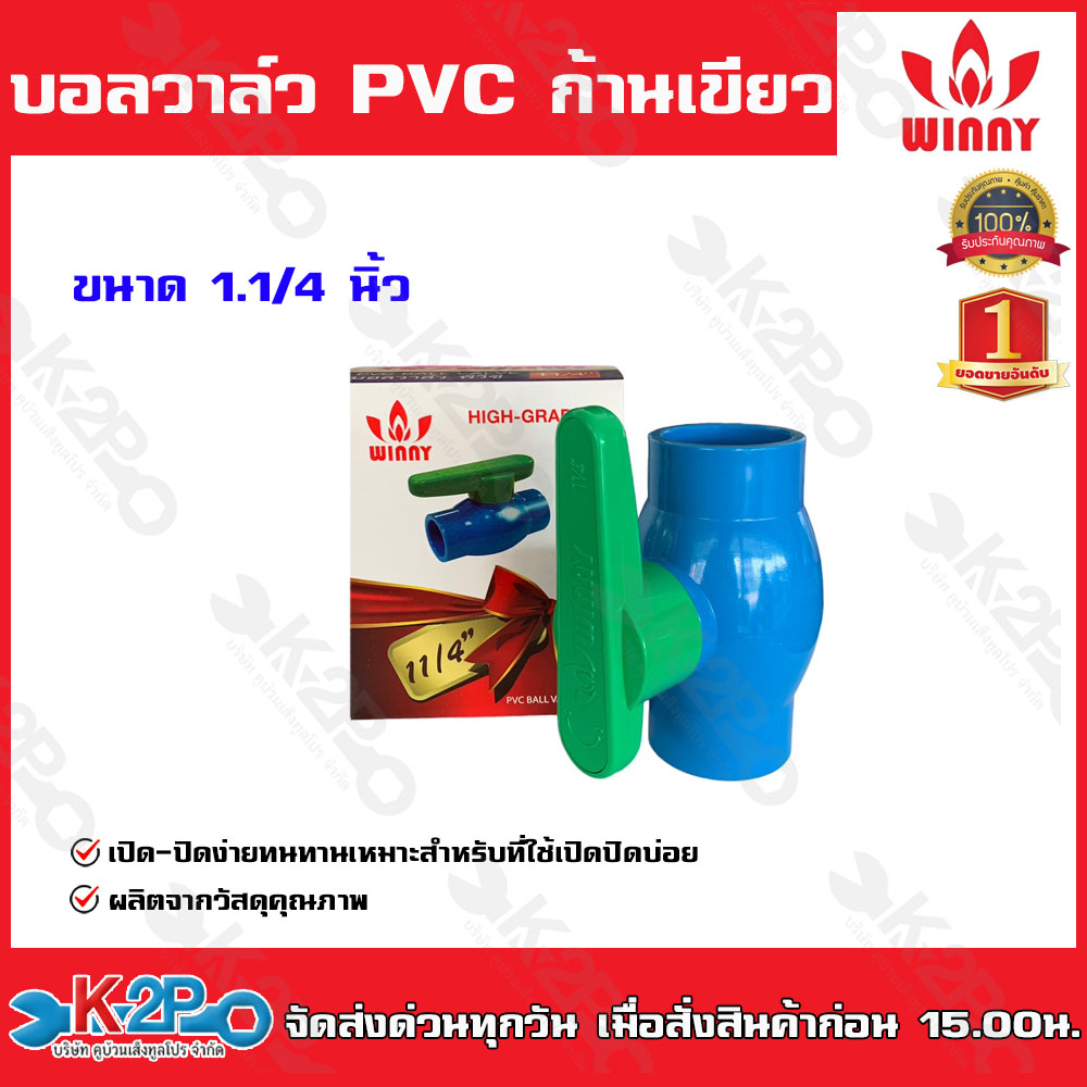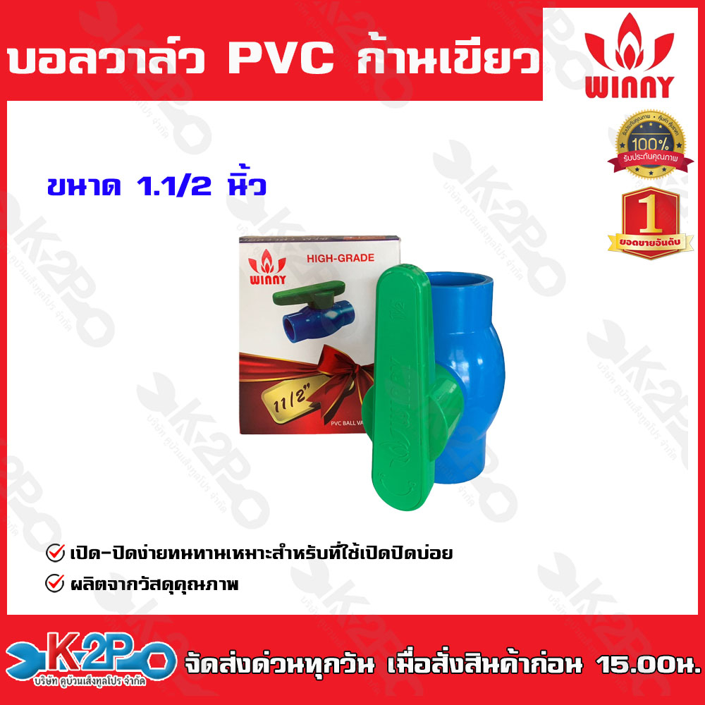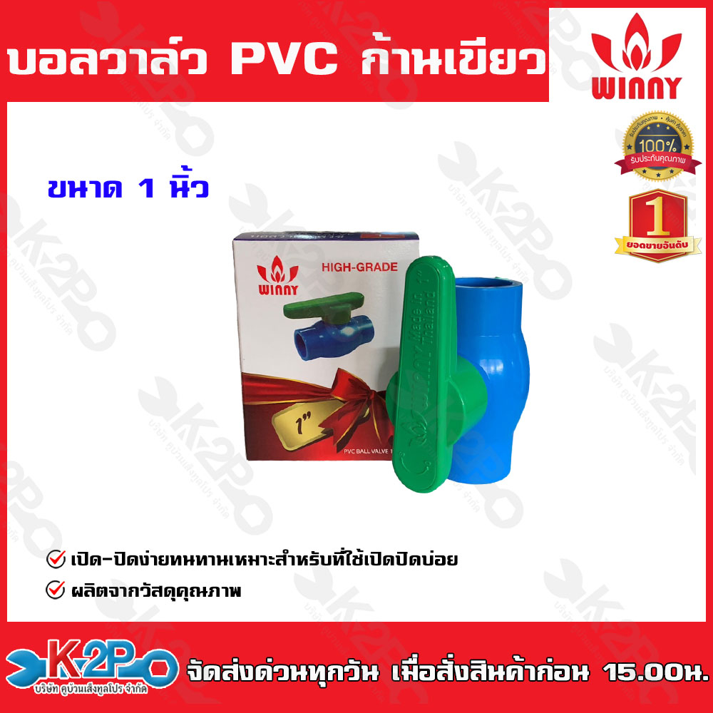 Winny บอลวาล์ว PVC ก้านเขียว เปิด-ปิด ง่าย ขนาด1/2นิ้ว-4นิ้ว ผลิตจากวัสดุคุณภาพ