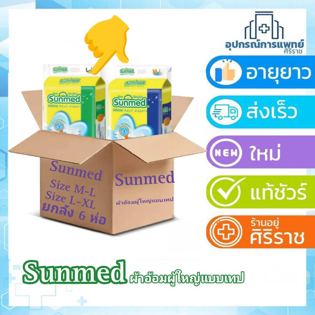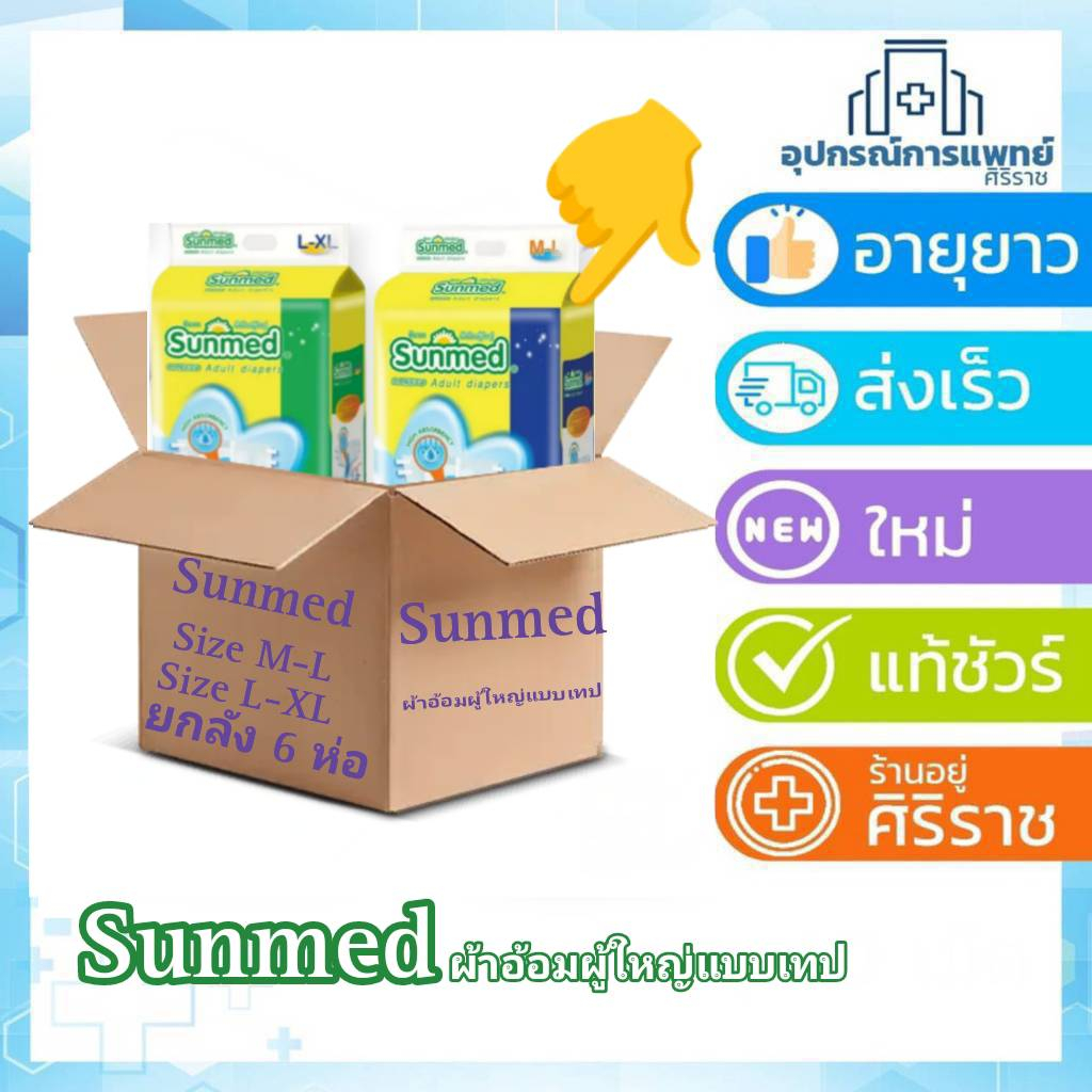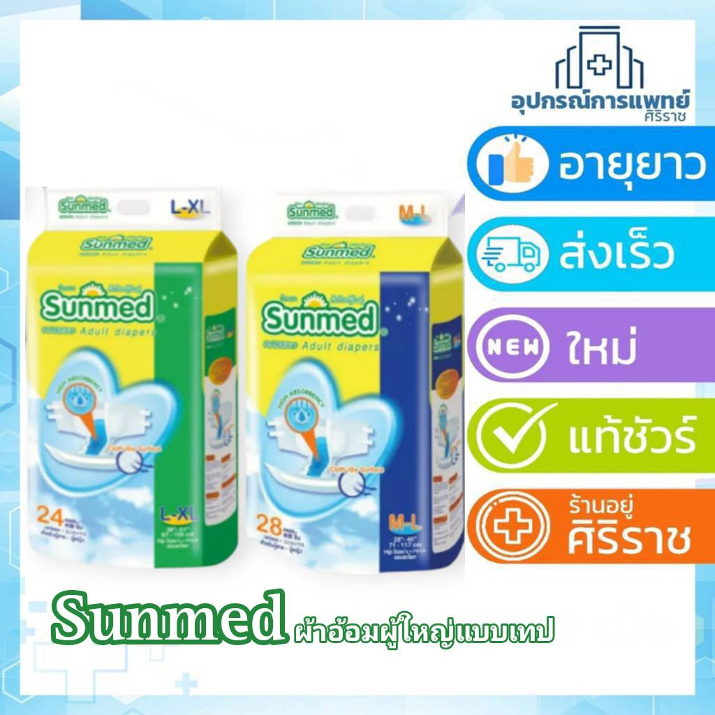 ยกลัง 6 ห่อ📦 Sunmed ผ้าอ้อมผู้ใหญ่แบบเทป ซันเมด ไซส์ M-L (28ชิ้น) // L-XL (24ชิ้น)