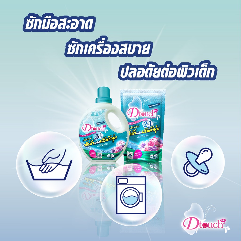 1แถม1 สุดคุ้ม Dtouch น้ำยาซักผ้า ผสมปรับผ้านุ่ม 2in1 (800 ml. แถม 410ml.)