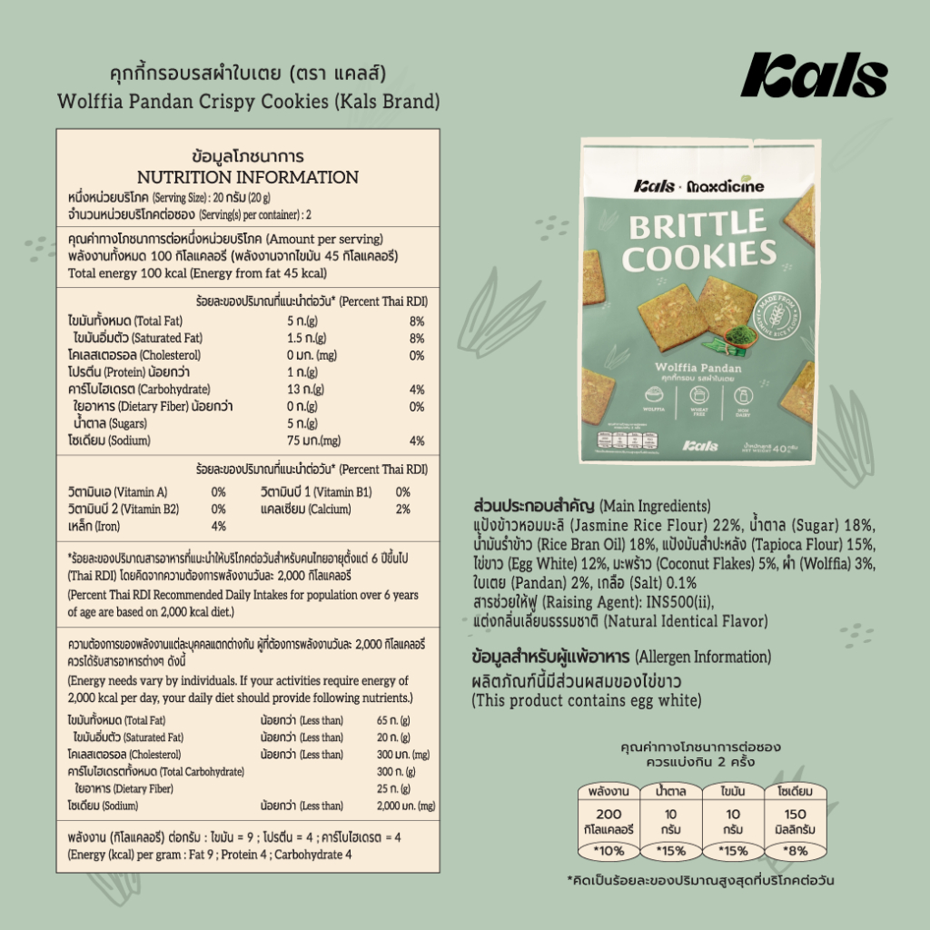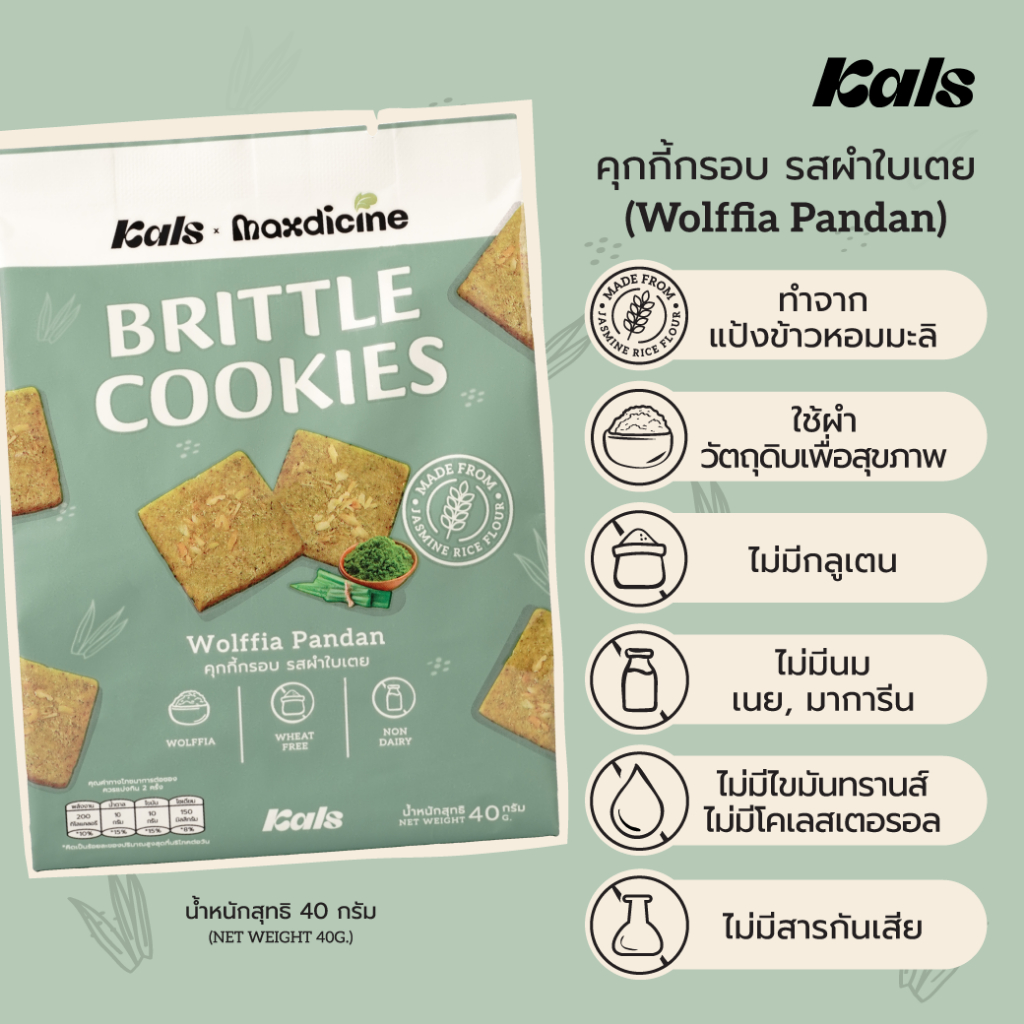 Kals x Madicine คุกกี้กรอบ รสผำใบเตย (ใช้แป้งออร์แกนิค/ไม่มีกลูเตน/คอเลสเตอรอล/เนย/ไขมันทรานส์/สารกันเสีย)