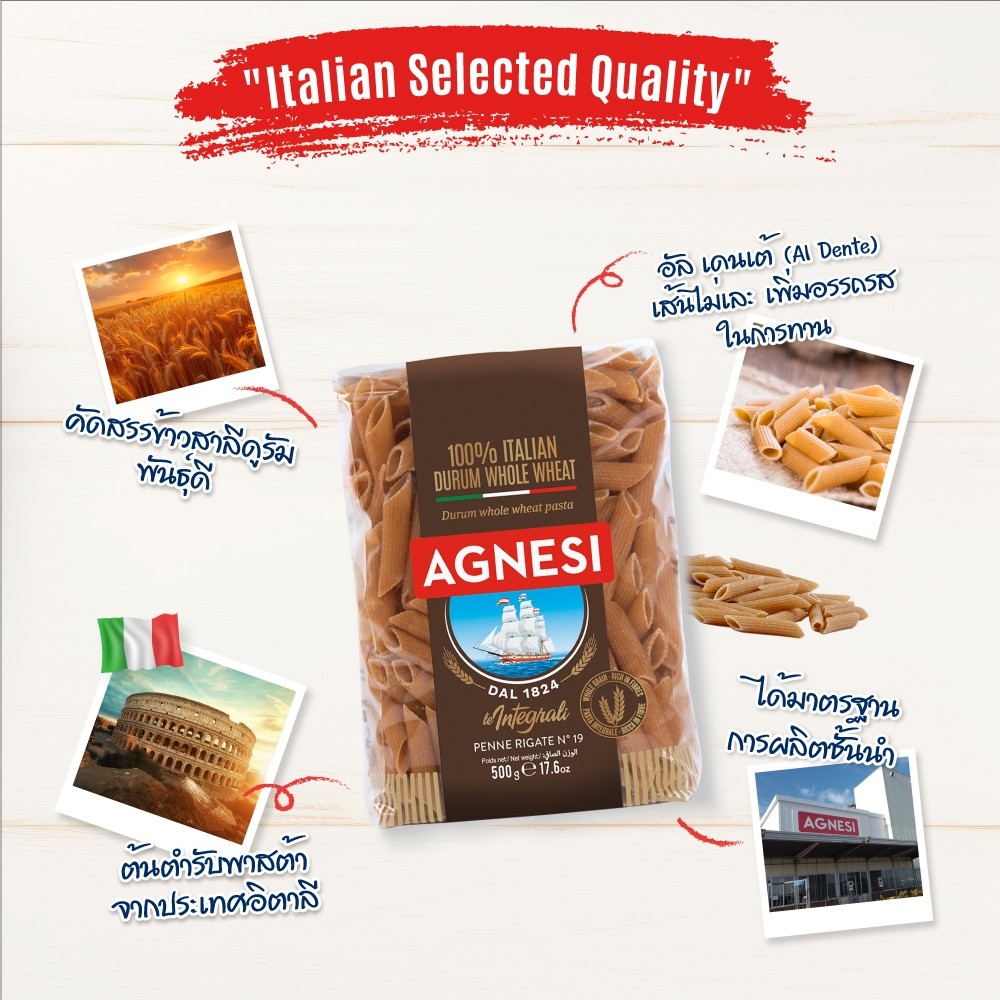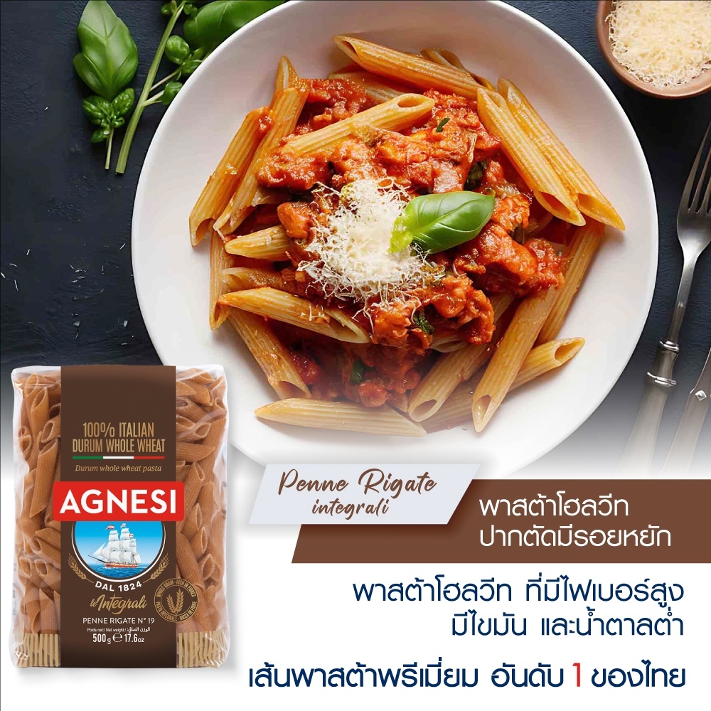 แอคเนซี เพนเน่ ริกาเต้ อินทีกราลี่ 500 กรัม │ Agnesi Penne Rigate Integrali 500 g