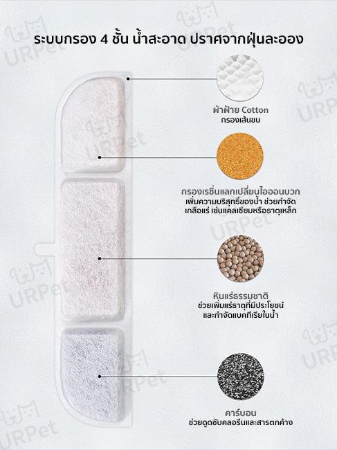 [V.2 | V.4] UrPet ไส้กรองน้ำพุ แผ่นกรองน้ำพุไร้สาย