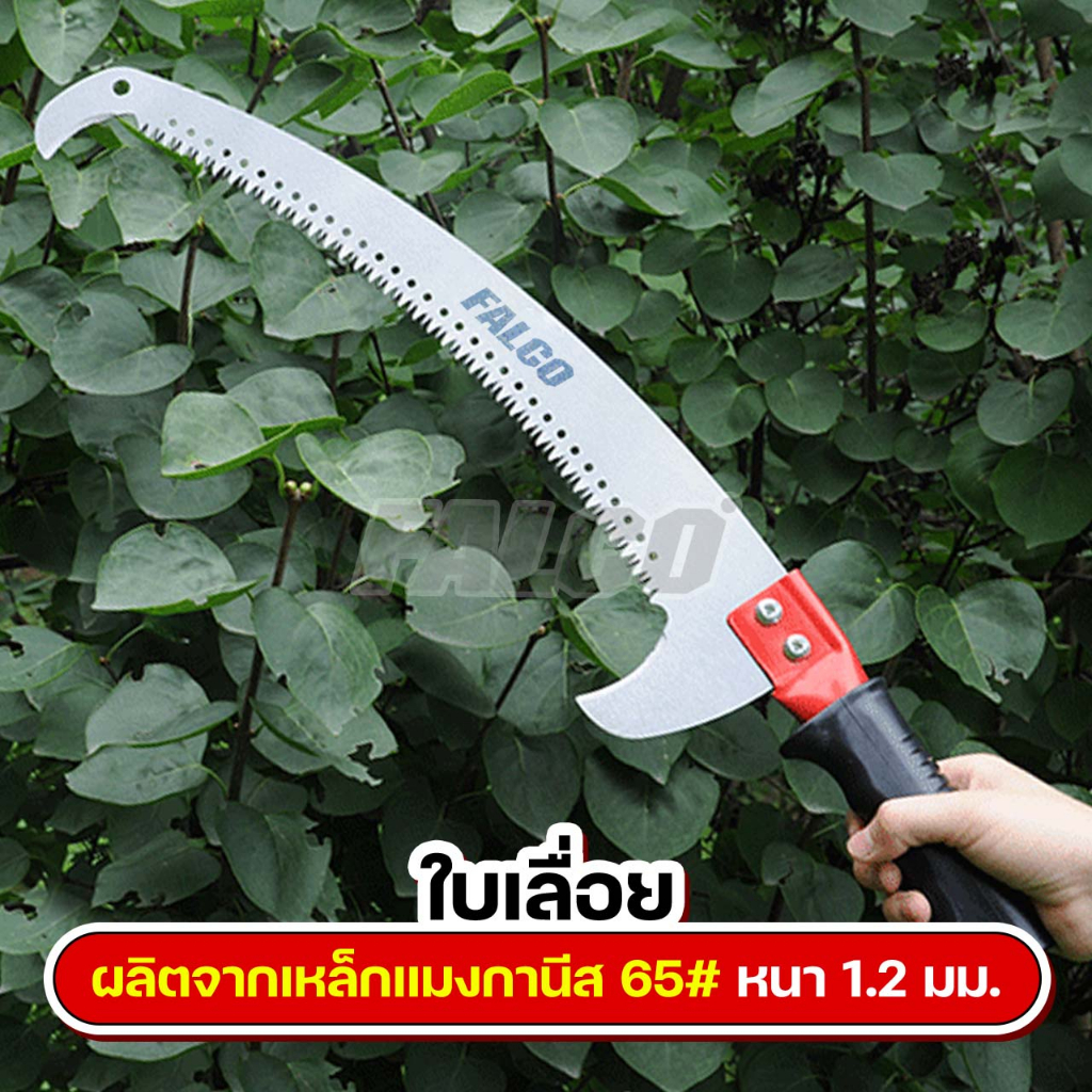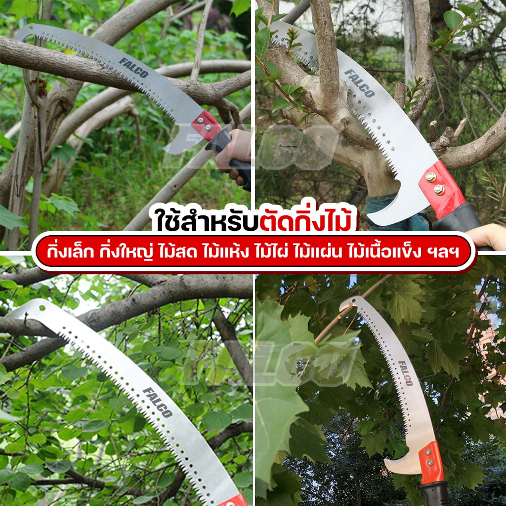 FALCO เลื่อยโค้งตัดกิ่งไม้ 2ตะขอ 17นิ้ว ต่อด้ามยาวเลื่อยไม้สูง เลื่อยมือ ตะขอกระตุก ปลายโค้ง แข็งแรง