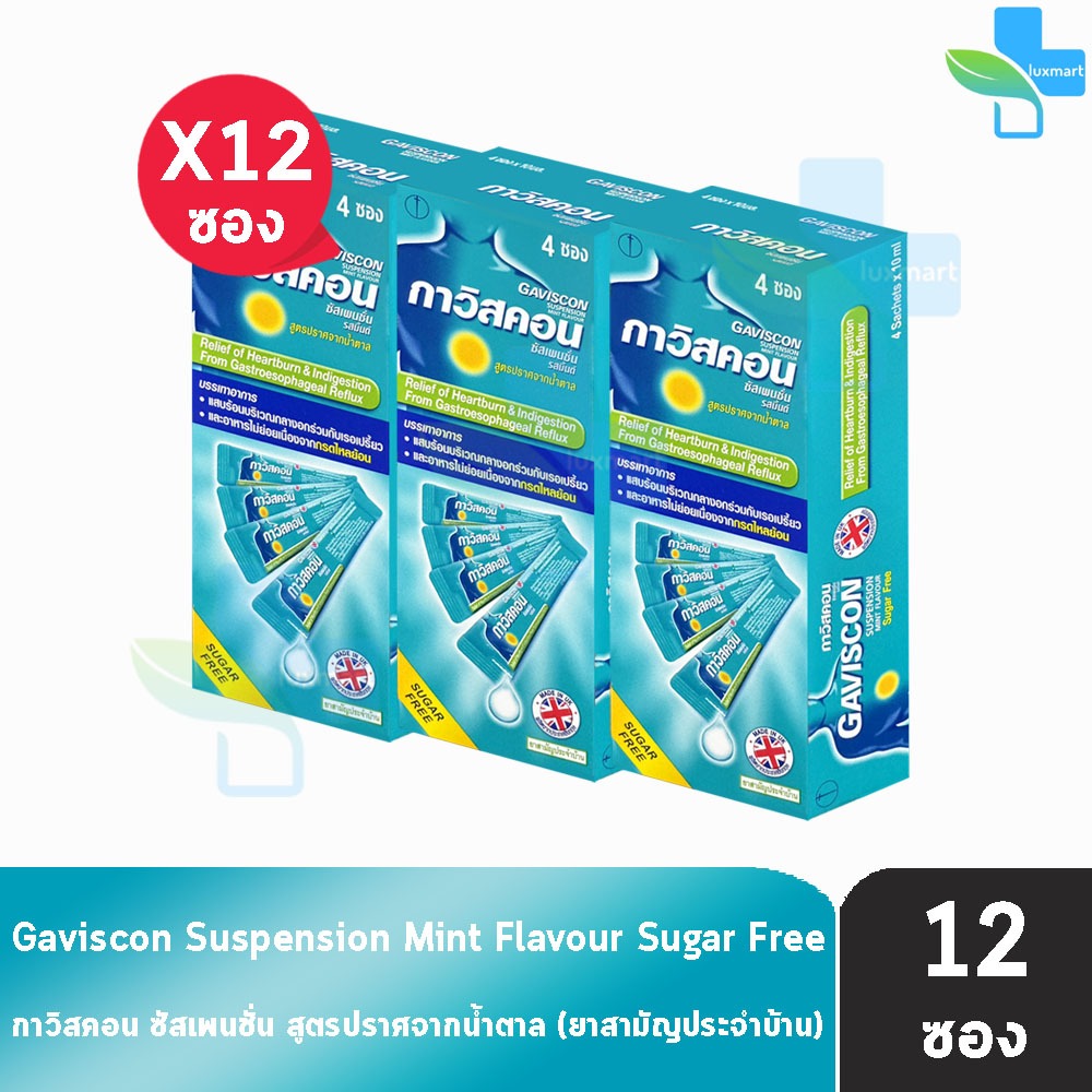Gaviscon Suspension Mint Flavour 10ml. กาวิสคอน รสมิ้นต์ ซองฟ้า 12 ซอง [1กล่อง สีฟ้า]JJ 2113 กรดไหลย้อน ยาสามัญประจำบ้าน