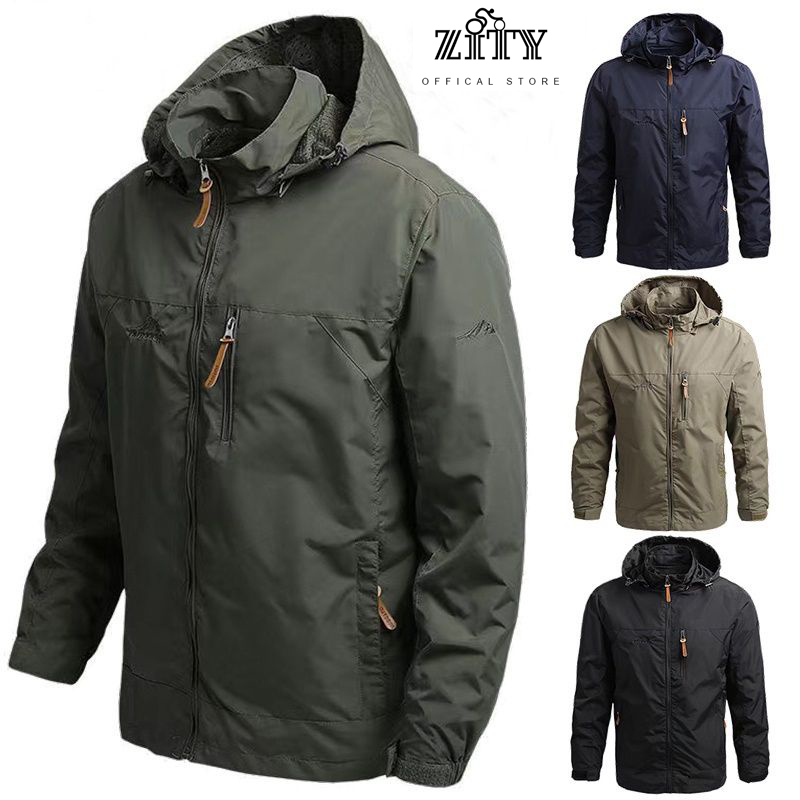 ZITY เสื้อแจ็คเก็ต เสื้อแจ็คเก็ตผ้าร่ม กันน้ำและกันลม งานดี ใส่สบาย กางเกงยุทธวิธี Big Shark หนัง Zip Hooded Jacket