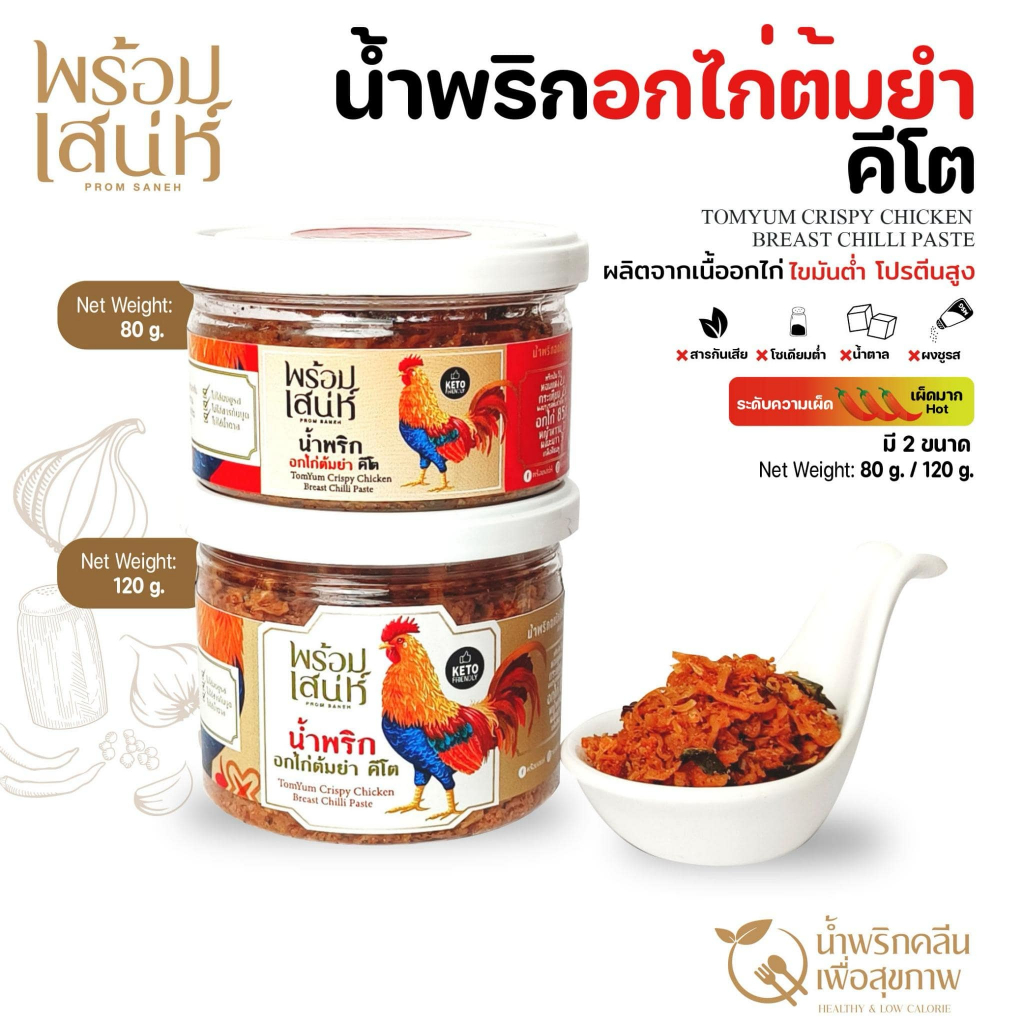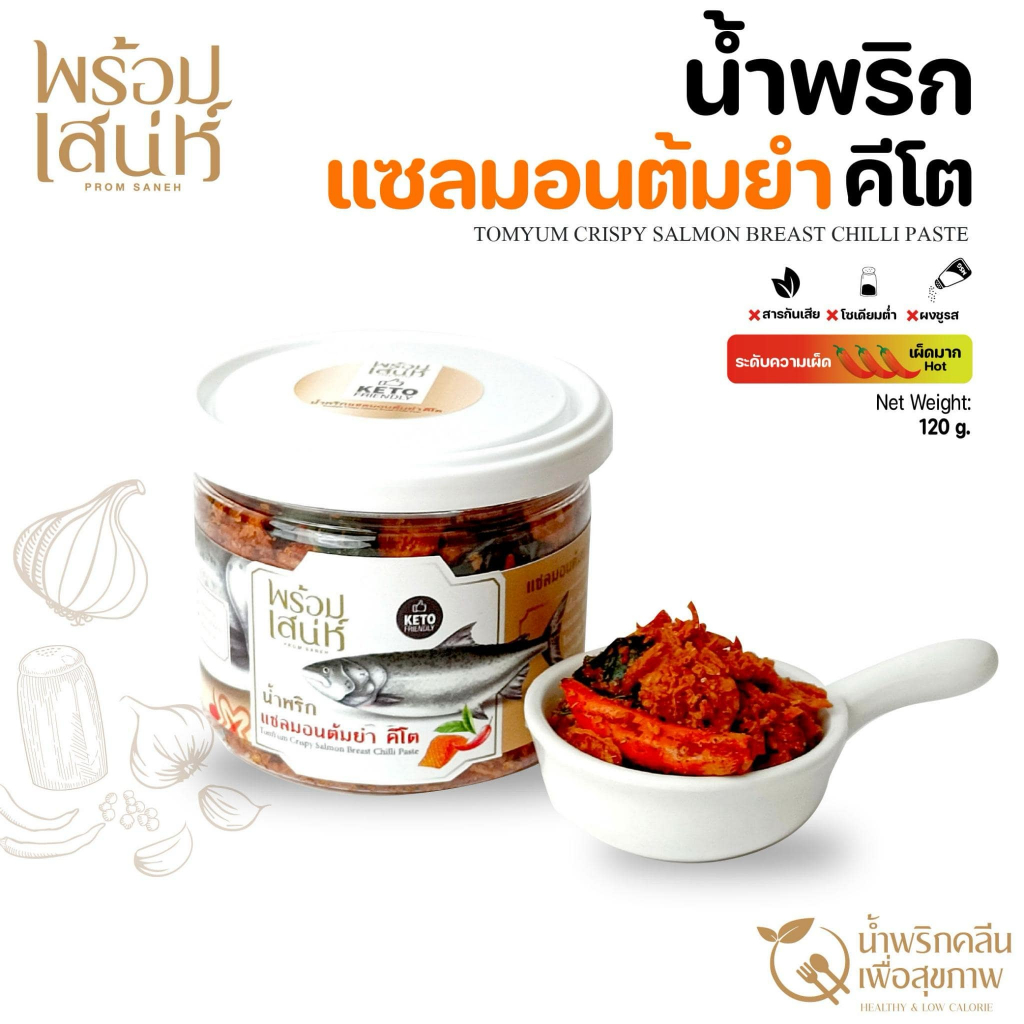 พร้อมเสน่ห์ น้ำพริกแห้ง ขนาด 120 กรัม คลีน คีโต และ มังสวิรัติ ปราศจากน้ำตาล ไม่มีผงชูรส ไม่มีน้ำตาล