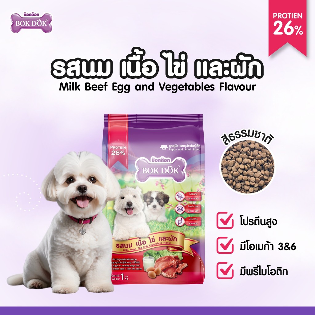 Bokdok บ๊อกด๊อก อาหารเม็ดสุนัขแบบเม็ด สุนัขโต/ลูกสุนัข ขนาด 1 กิโลกรัม