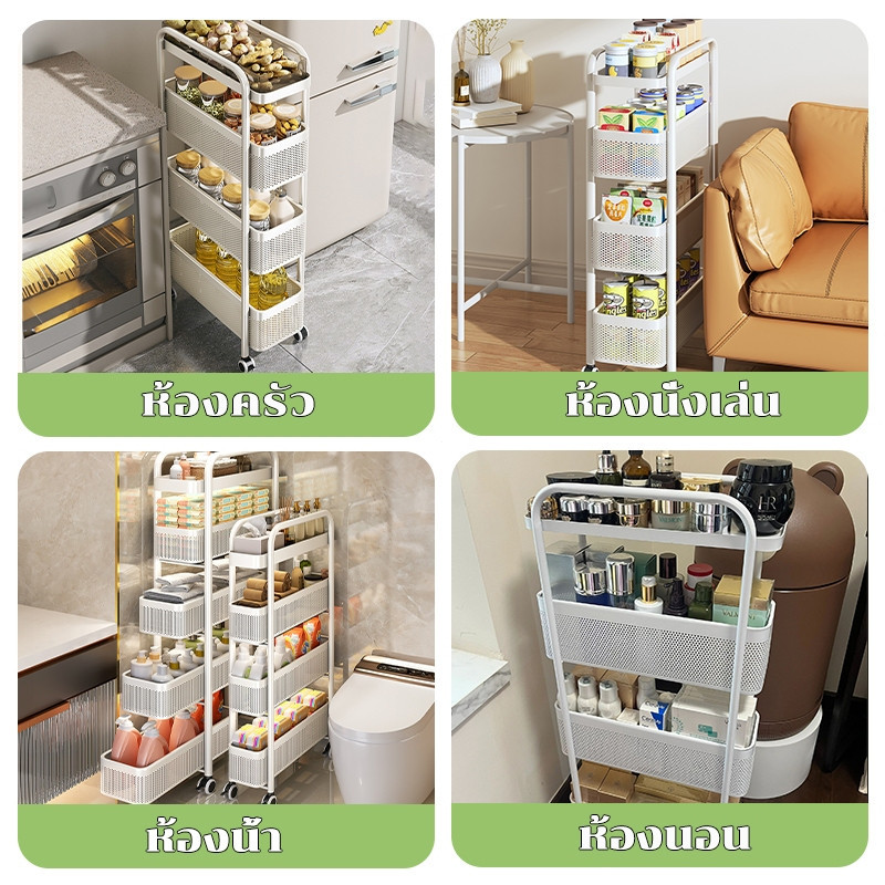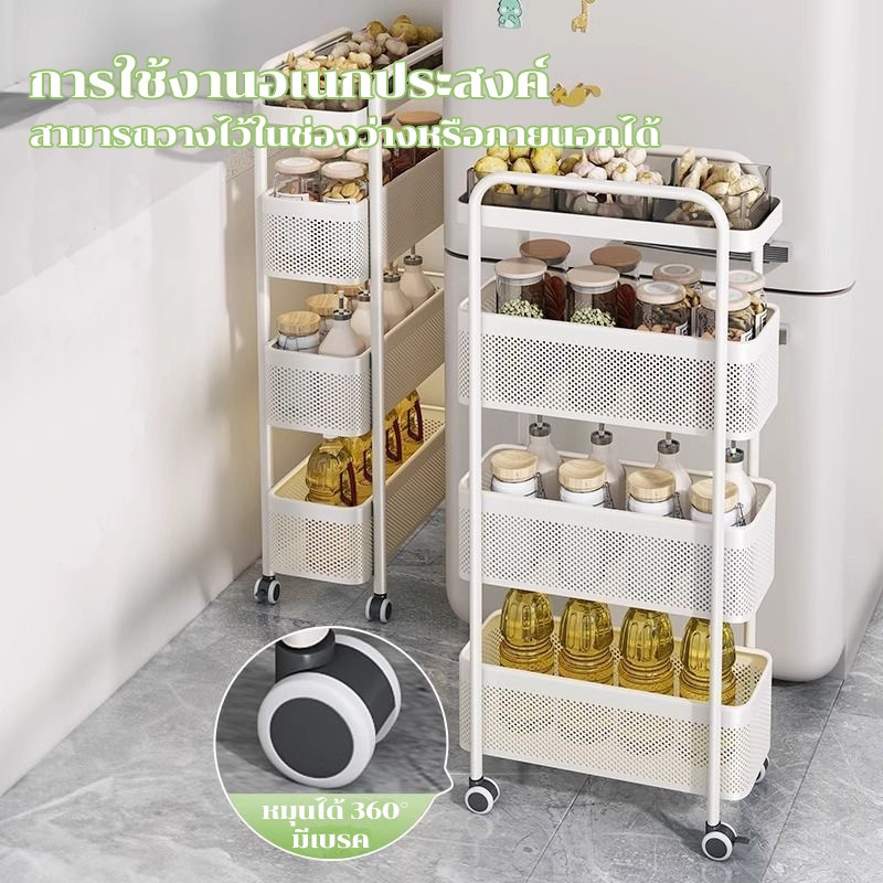 GSlife รถเข็นครัว3-5ชั้น! ล้อ360°+มือจับสแตนเลสทน50kg/ชั้น เก็บของ15cmบาง ไม่ต้องประกอบ ส่งคลองหลวง