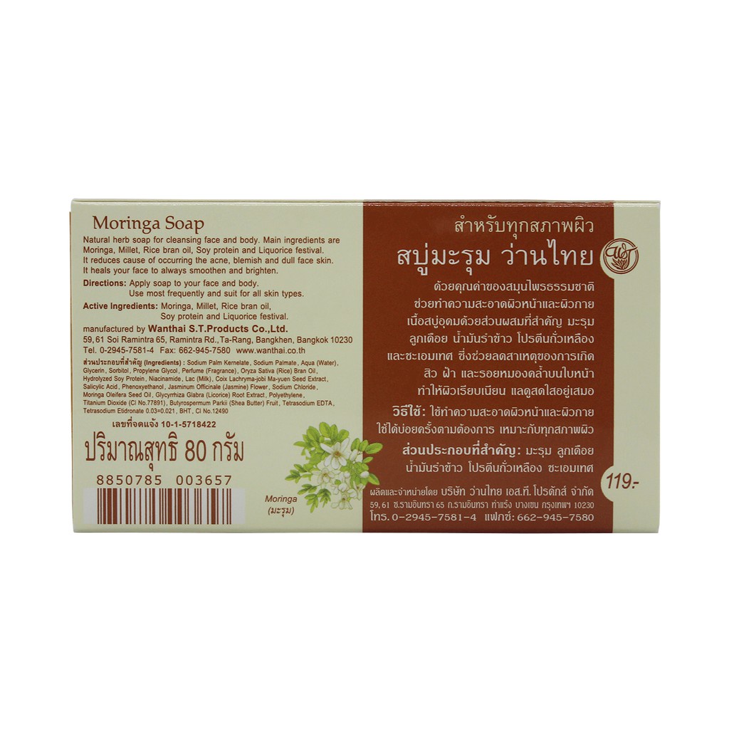 Wanthai Moringa Soap ว่านไทย สบู่ มะรุม สำหรับทุกสภาพผิว 80 กรัม