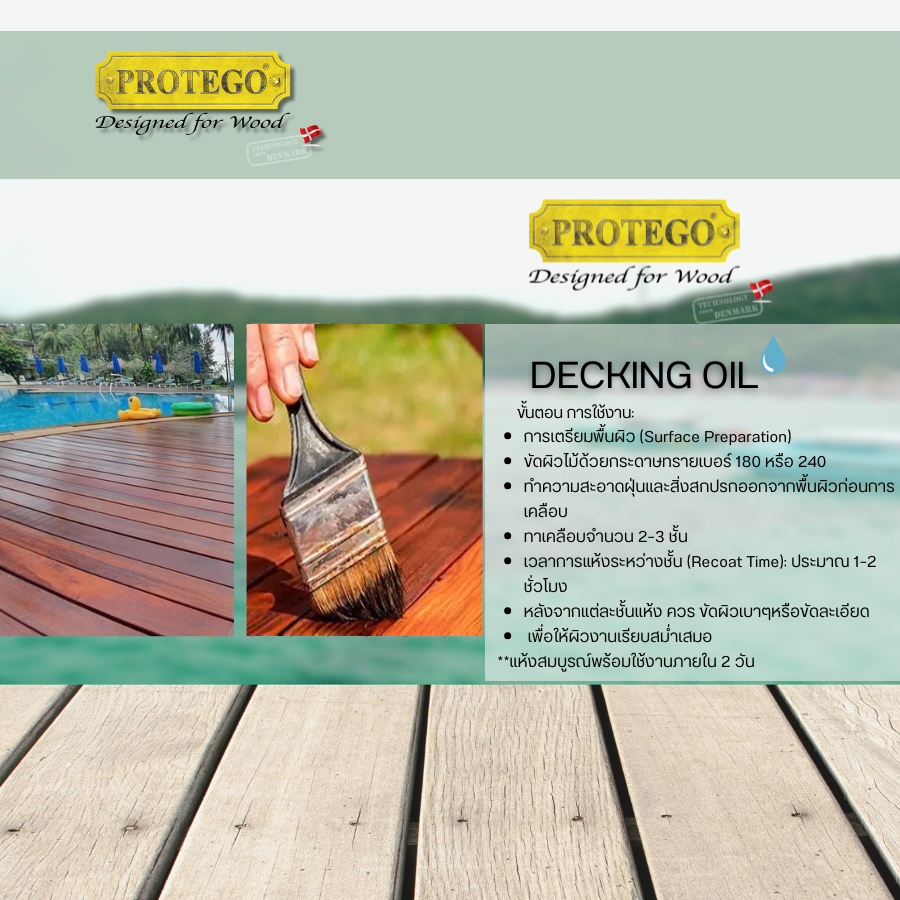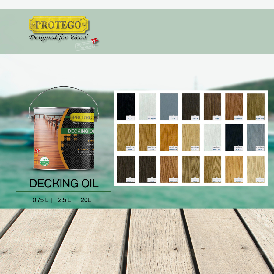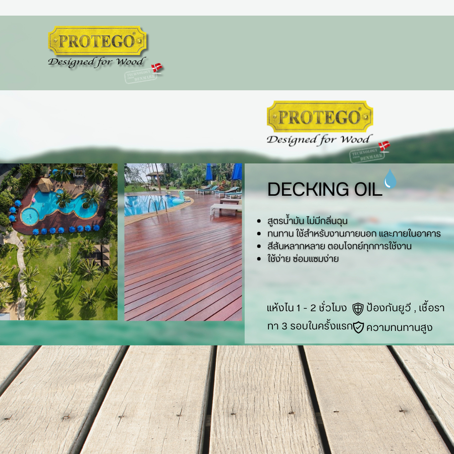 สีทาไม้ สีย้อมไม้โปรเทโก้ PROTEGO Decking Oil // Gloss , Matt ( เงาและด้าน ) สูตรน้ำมัน ใช้สำหรับทางานไม้ภายนอก
