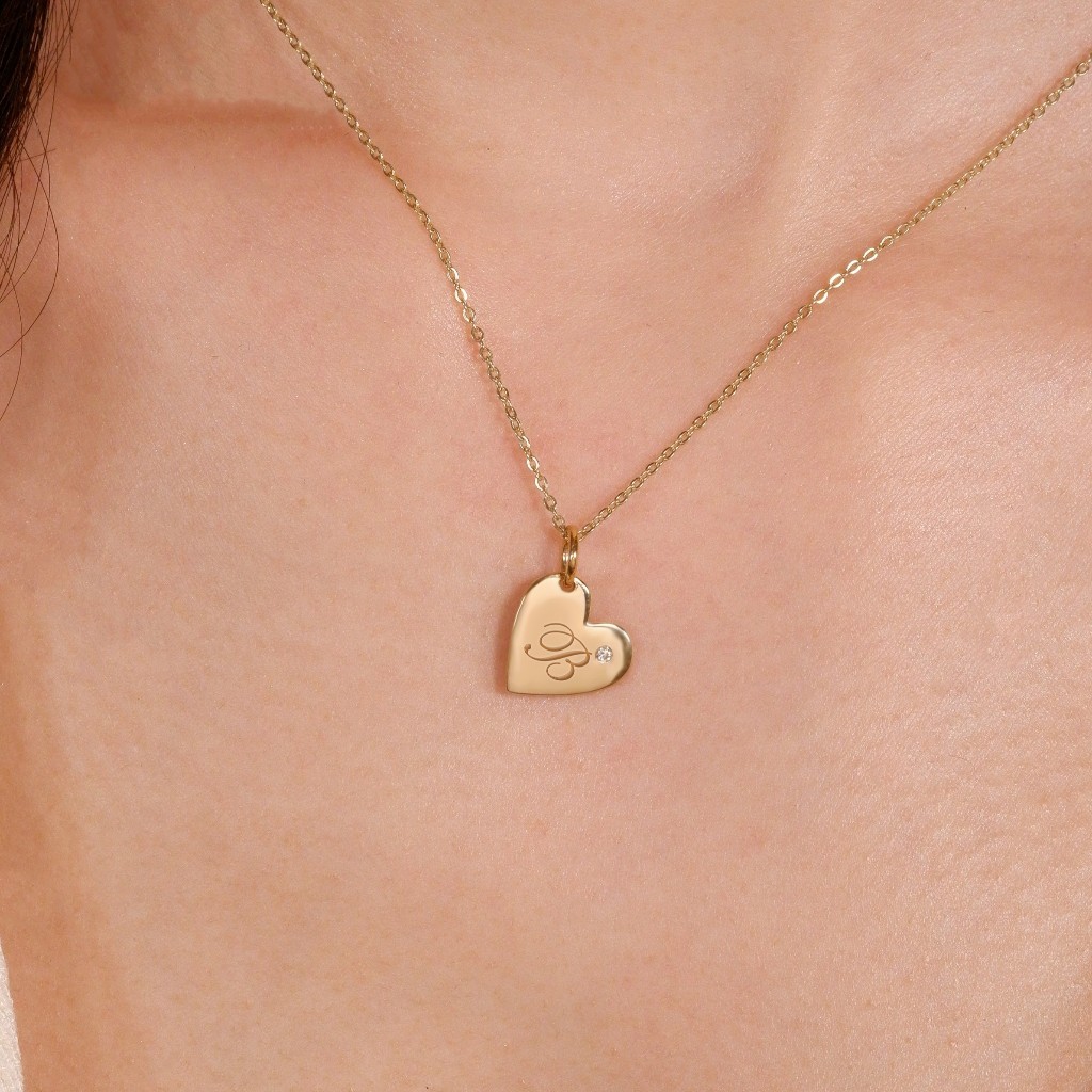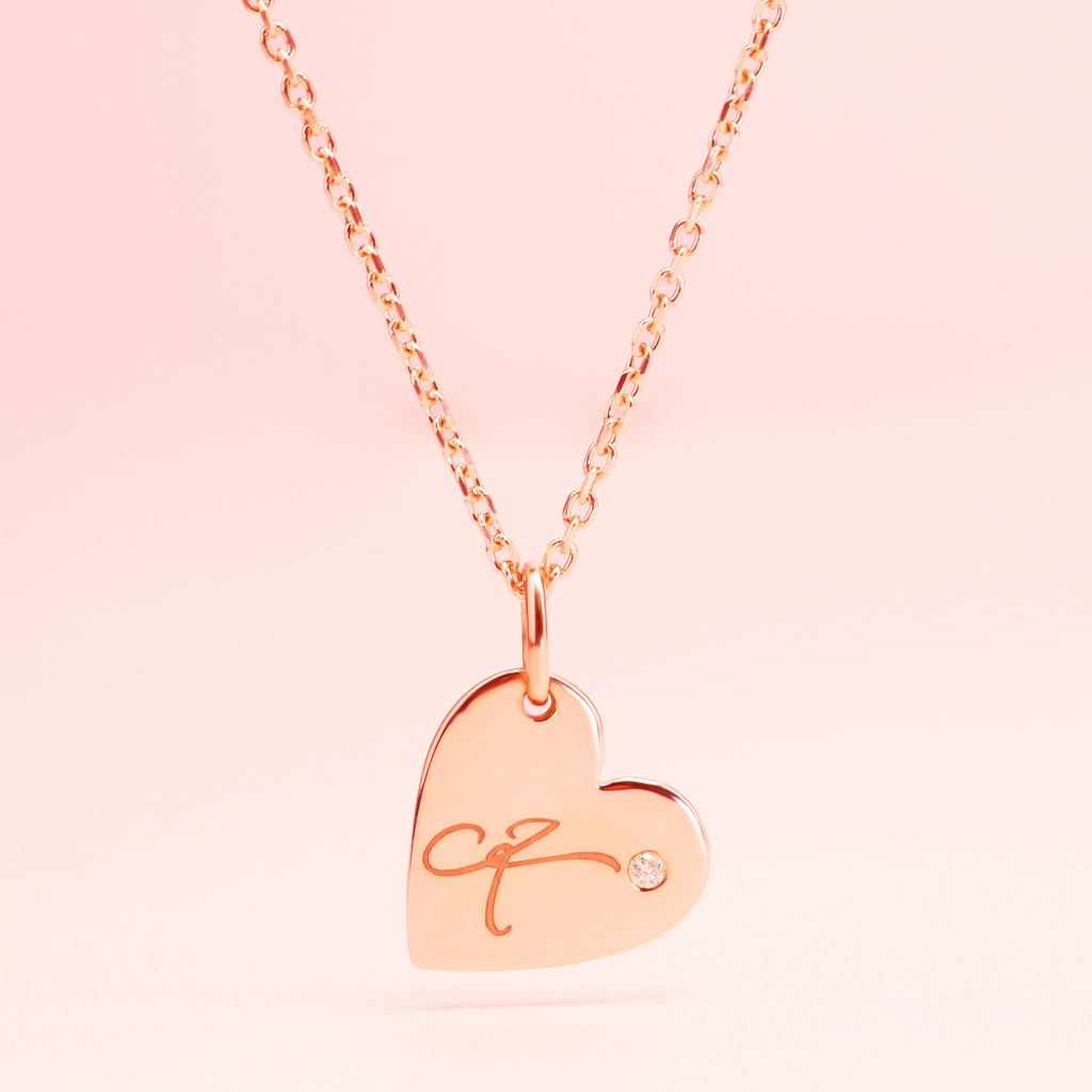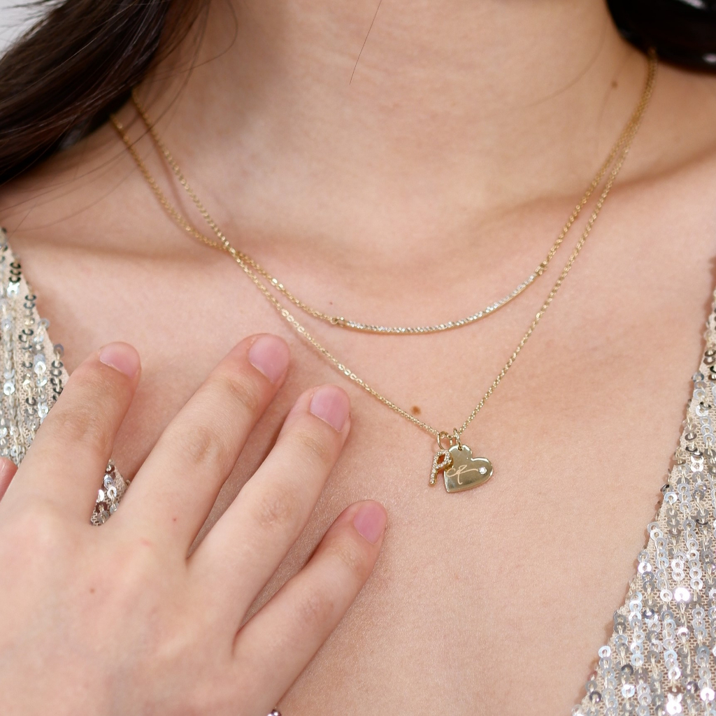จี้เพชรแท้ทองแท้9k Delicate Heart Pendant with Diamond(จี้อย่างเดียว) (แจ้งตัวอักษรทางแชทได้เลยค่ะ)