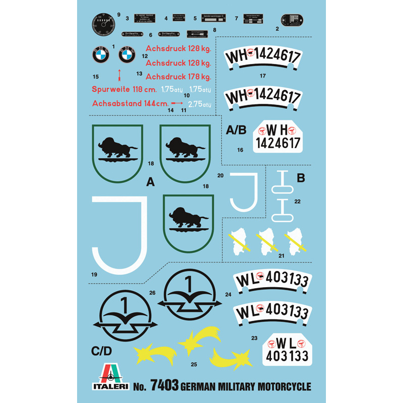 พลาสติก โมเดล ประกอบ ITALERI สเกล 1/9 German Military Motorcycle with side car (7403)