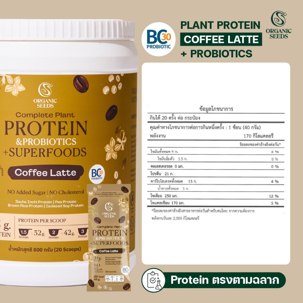 30 ซอง โปรตีนพืช รสกาแฟ EXP : 24/6/27 / Complete Plant Protein& Probiotics + Superfoods