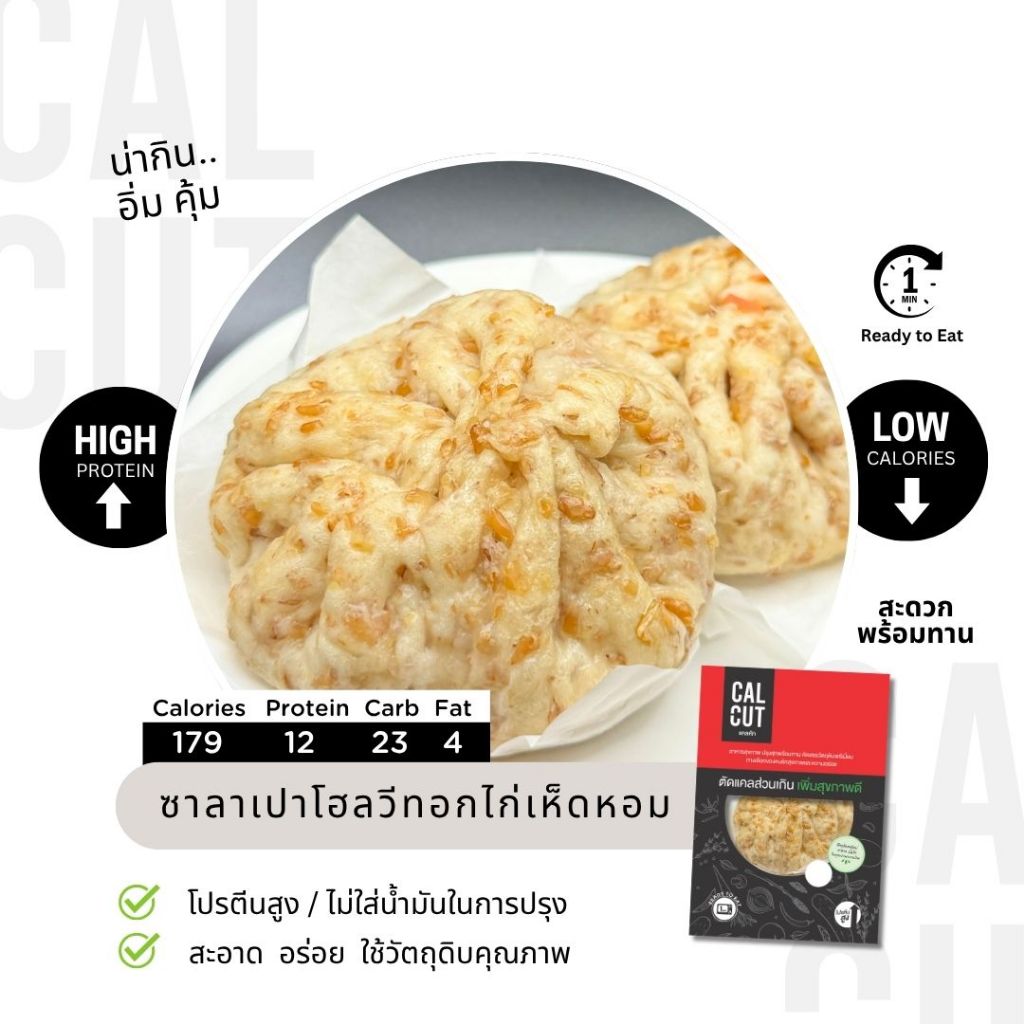 ซาลาเปาโฮลวีท อกไก่ / กุ้ง / ฟักทอง ไก่เห็ดหอม อาหารคลีน อาหารเพื่อสุขภาพ อกไก่นุ่ม เชฟเต้ย เชฟซีเครท Calcut แคลคัท