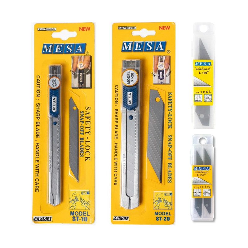 คัตเตอร์สเตนเลส MESA รุ่น ST-10 / ST-20 ใบมีดสเตนเลส มีความคม ไม่เป็นสนิม ระบบ Safety-Lock ทำมุมเฉียง 30 องศา