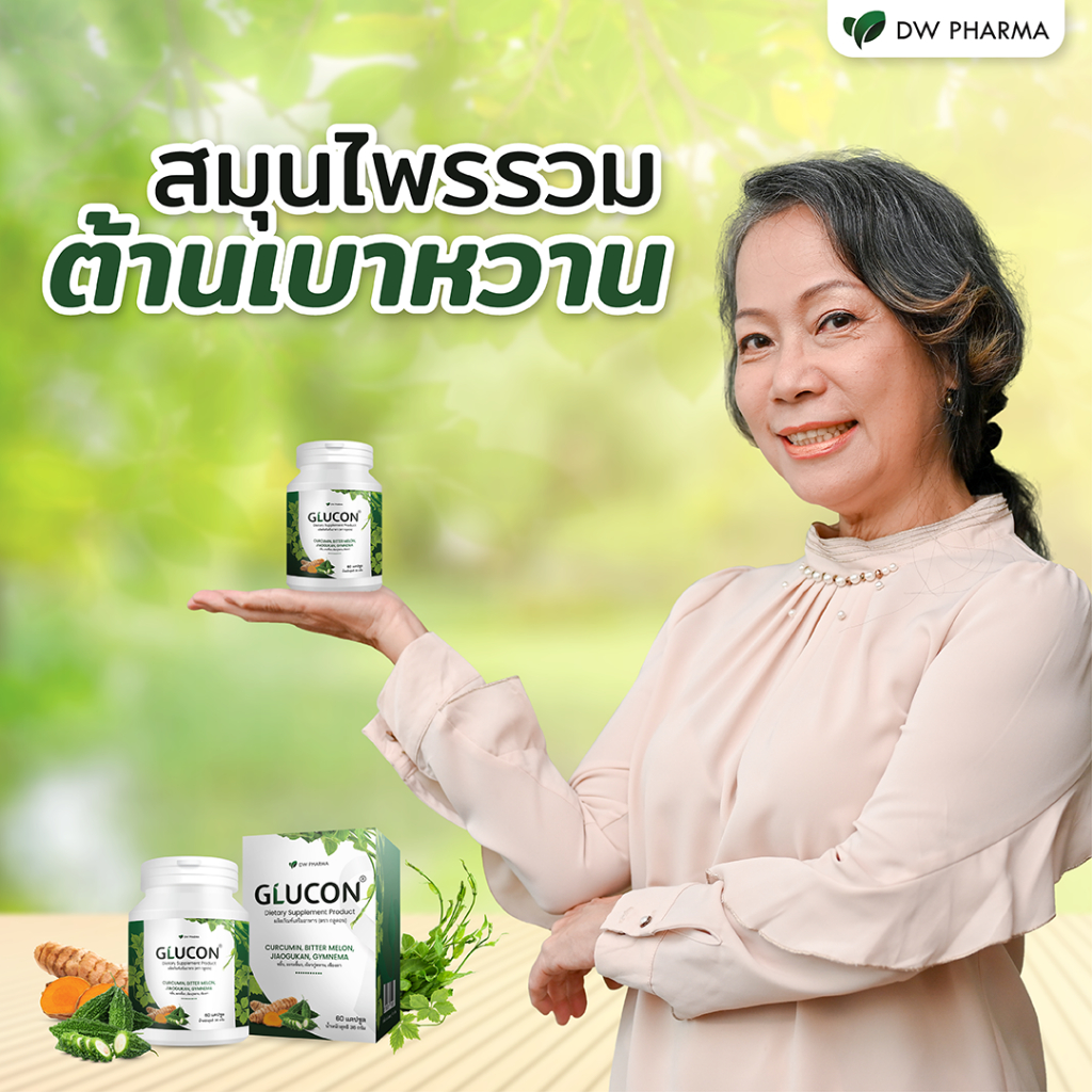GLUCON สมุนไพรรวม ต้านเบาหวาน คุมน้ำตาล ลดอาการอักเสบและอาการแทรกซ้อน ขนาด 60 Cap