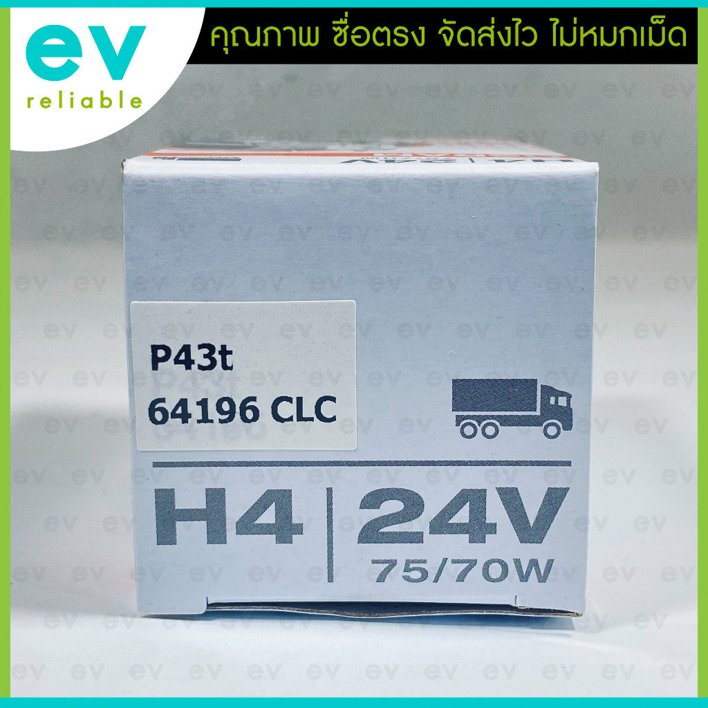 หลอดไฟหน้ารถยนต์ OSRAM แท้100% H4 24V 75/70W หลอดไฟหน้ารถใหญ่ แบรนด์เยอรมัน 64196CLC รุ่นเดียวกับ PHILIPS H4 24V 75/70