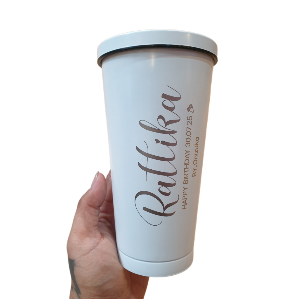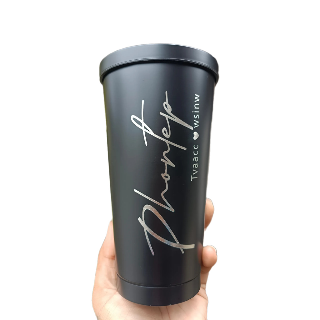 [เลเซอร์1ด้านเฉพาะชื่อ/ข้อความ] แก้วเก็บอุณหภูมิ ทรงโคนเหลี่ยม 500ml ไม่มีรูป รวมเลเซอร์เรียบร้อยจ้า