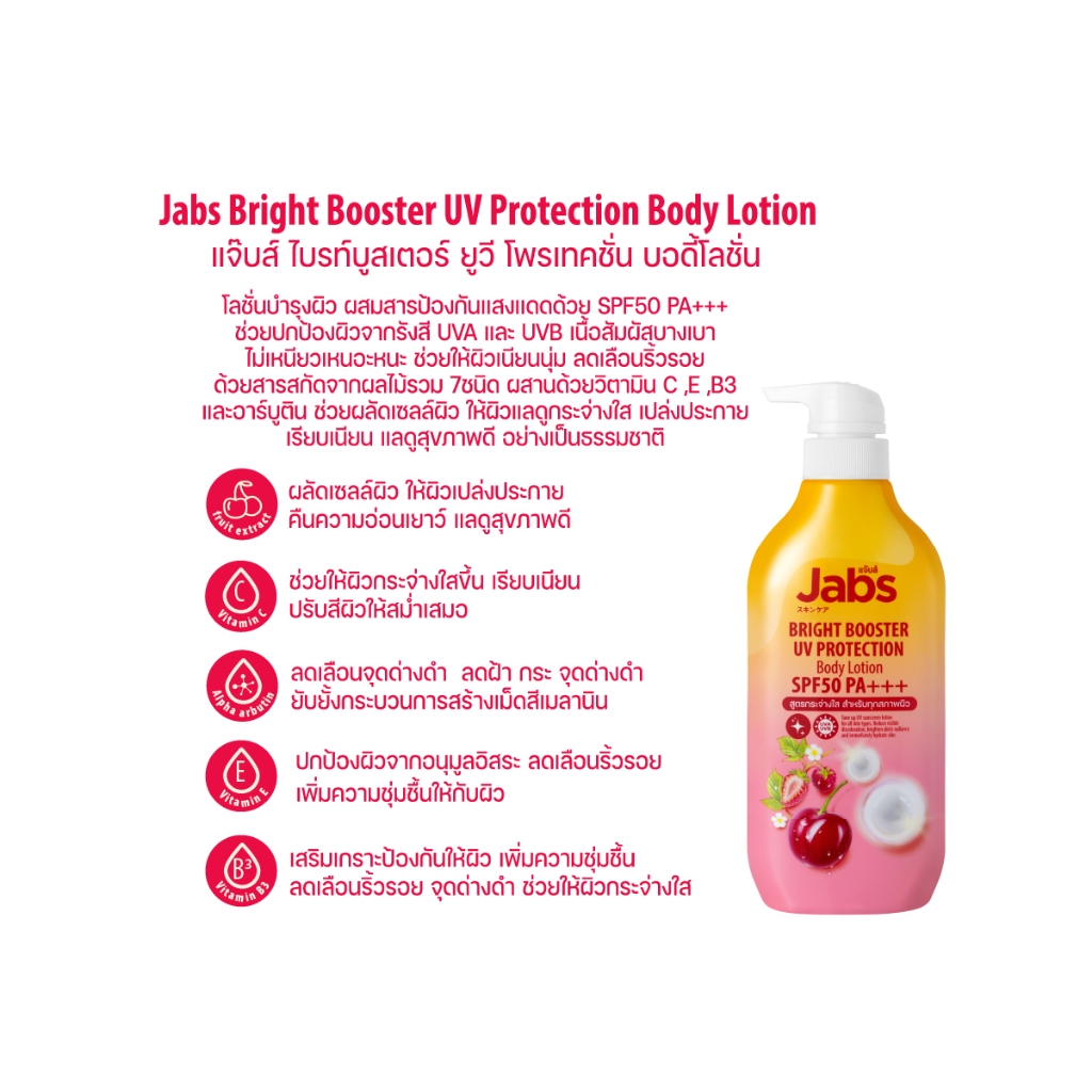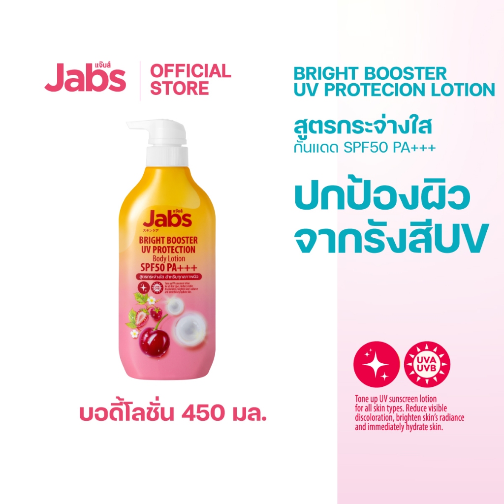 Jabs กันแดด แจ๊บส์ ไบรท์บูสเตอร์ ยูวี โพรเทคชั่น บอดี้โลชั่น SPF50 PA+++ 450มล. x1
