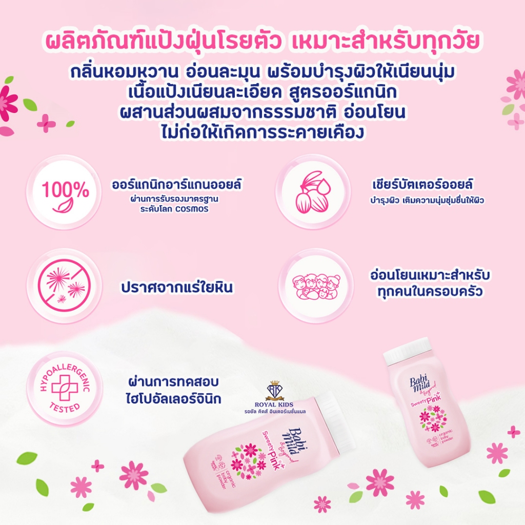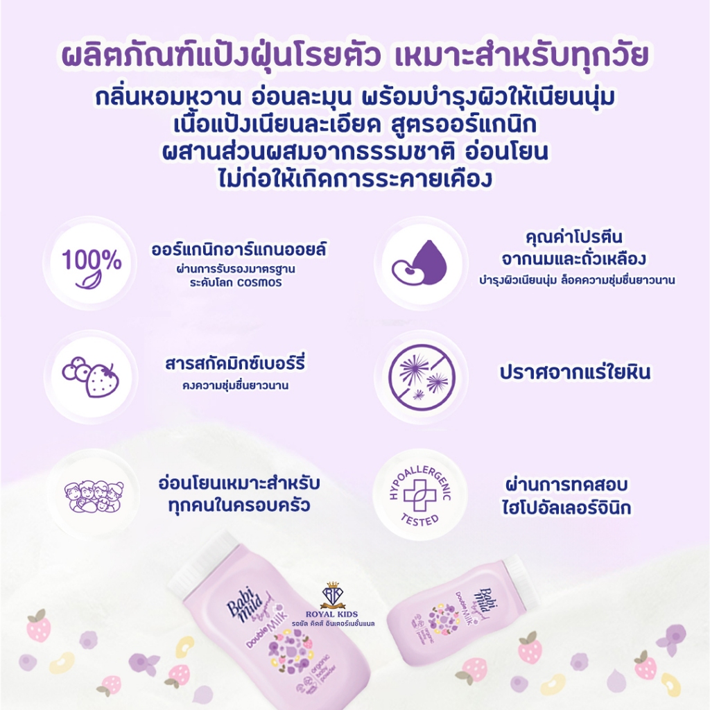 Fairy kids เบบี้มายด์ แป้งฝุ่นเด็ก สูตร ดับเบิ้ล มิลค์ โปรตีน พลัส ขนาดพกพา 45 กรัม Babi Mild AO0022