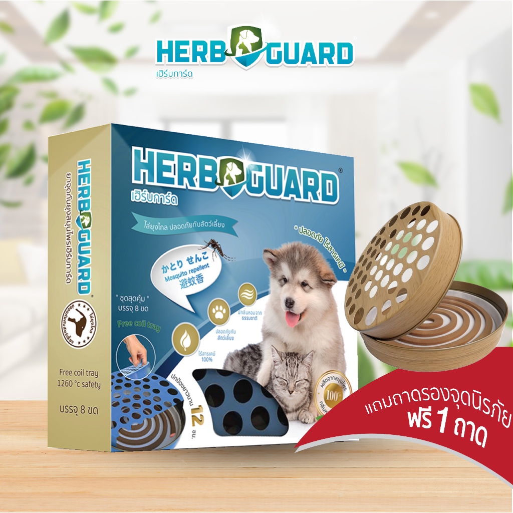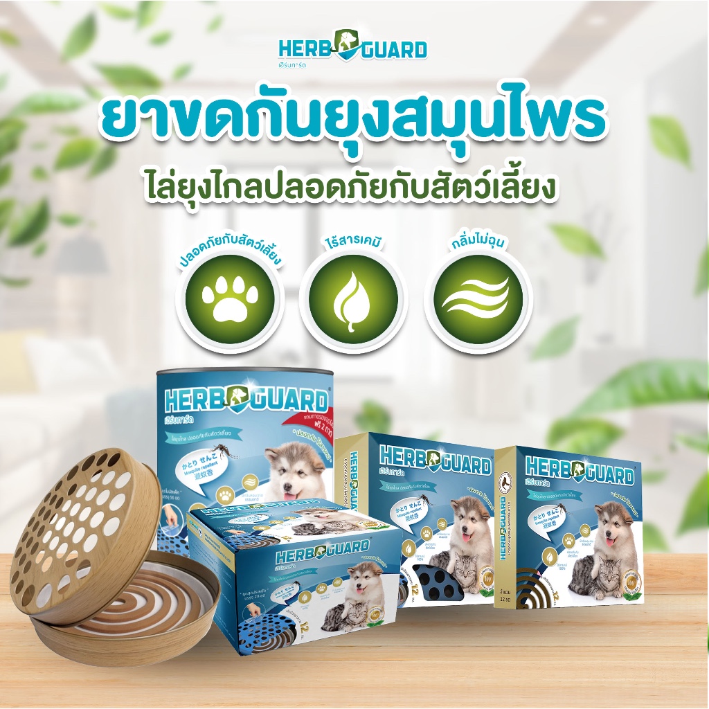 Herbguard เฮิร์บการ์ดยาจุดกันยุงสมุนไพรสำหรับสัตว์เลี้ยง 12 ขด S รีฟีลไม่มีถาด| 8 ขด M แถมถาดรองจุด