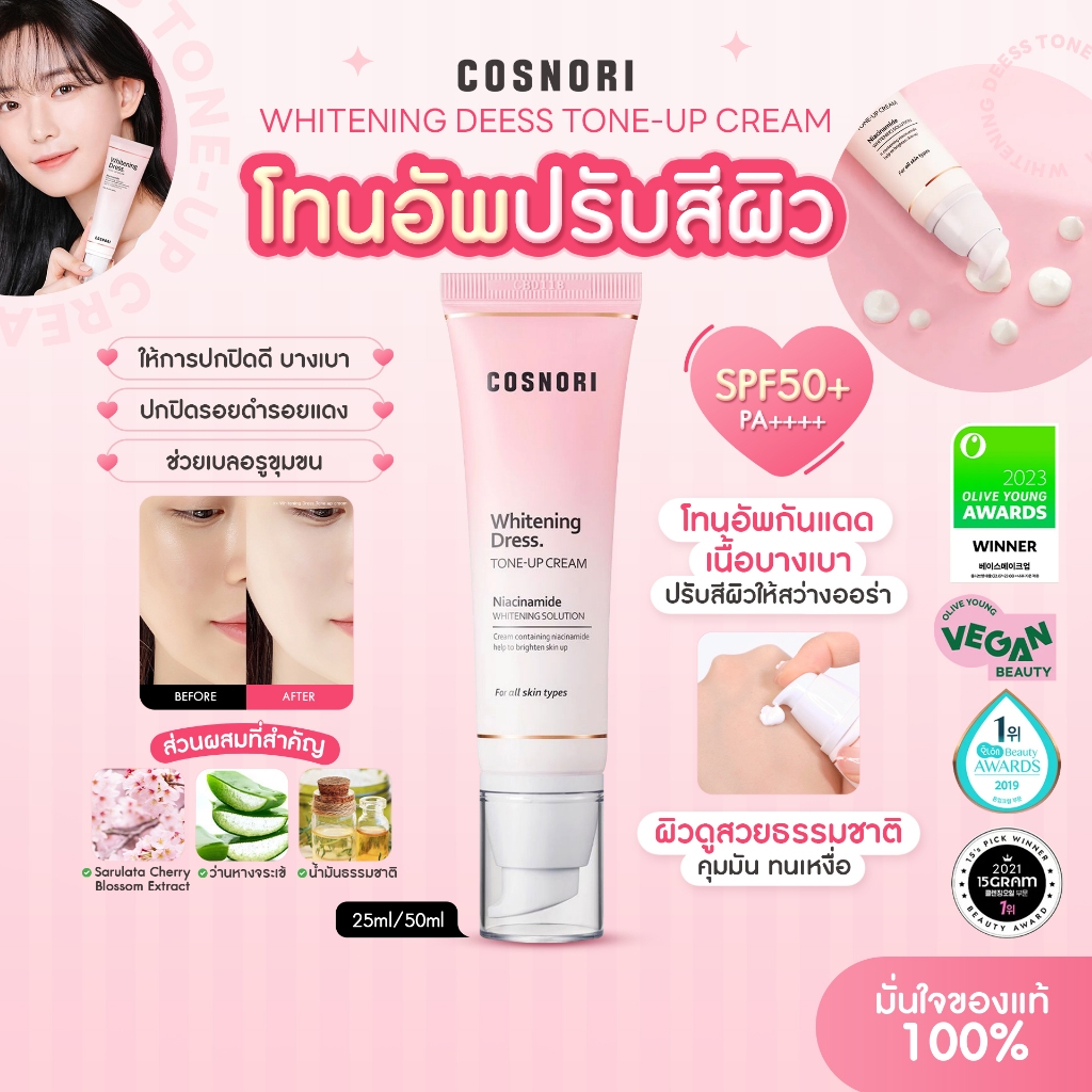 COSNORI WHITENING DRESS TONE UP CREAM 50 ml คอสโนริ ไวท์เทนนิ่ง เดรส โทน อัพ ครีม 50มล.