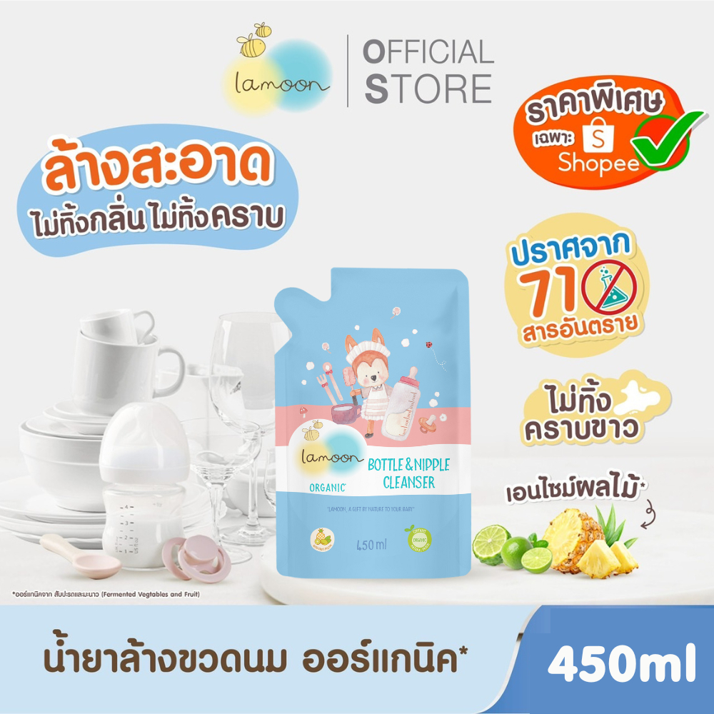 [แพ็ค4] Lamoon น้ำยาล้างขวดนมออร์แกนิค 450 ml. (4รีฟิล)