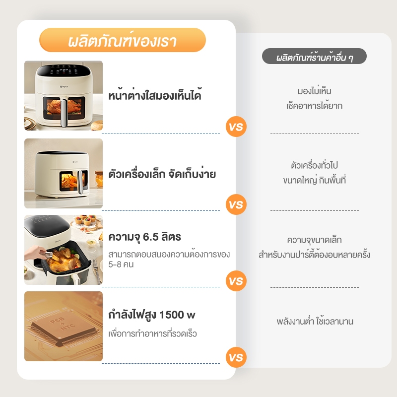 [สินค้ามีการอัปเกรดแผงภาษาไทย]Simplus หม้อทอดไร้น้ำมัน Airfryer 6.5 ลิตร ความจุขนาดใหญ่พิเศษ ใช้ในครัวเรือน แบบสัมผัส Air Fryer KQZG018