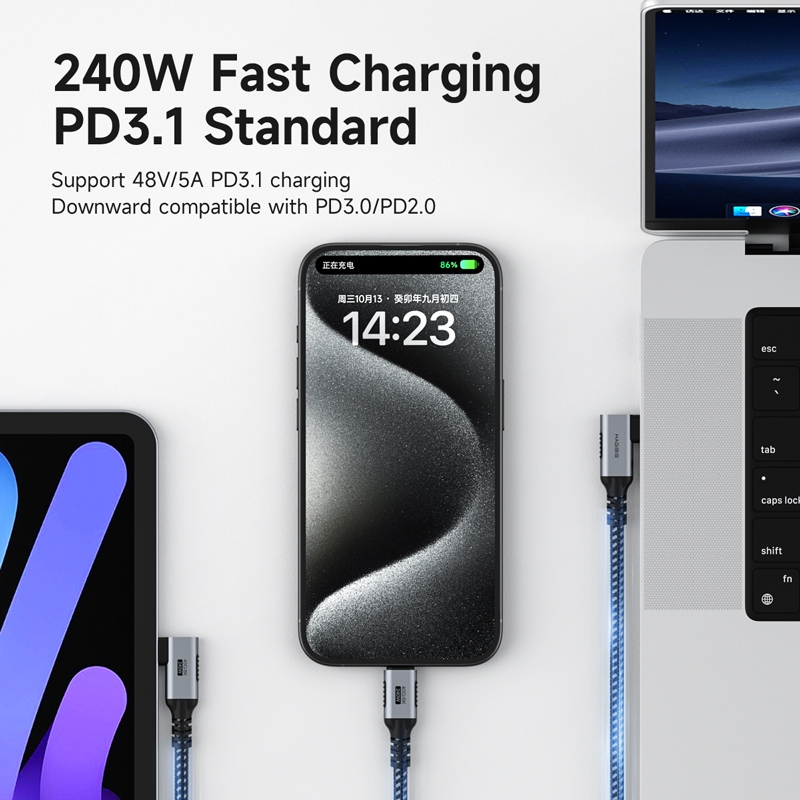 Hagibis สาย USB4, Graphene Braided USB C ถึง USB C 240W Fast สายชาร์จ 8K @ 60Hz 40Gbps Data Transfer Thunderbolt 4/3 สายวิดีโอสําหรับ iPhone 16/15 Pro iPad