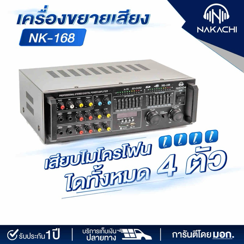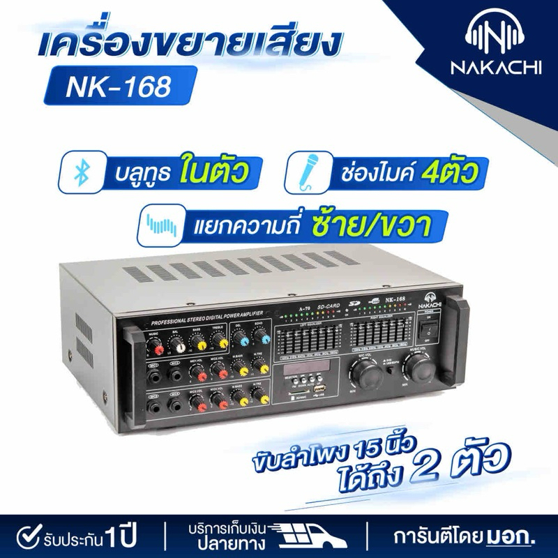 แอมป์ขยายเสียง NAKACHI NK-168 ขับลำโพง 15" 2 ใบ Bluetooth USB FM
