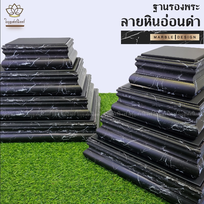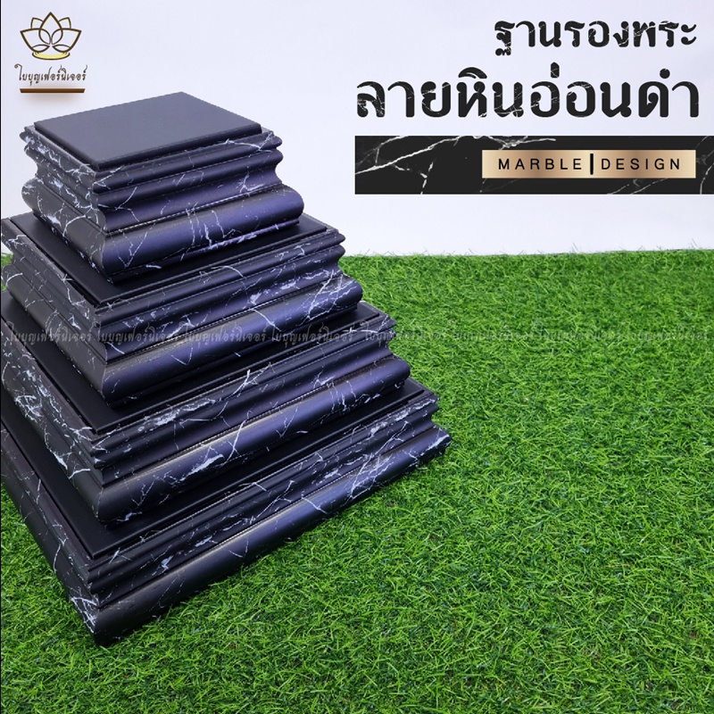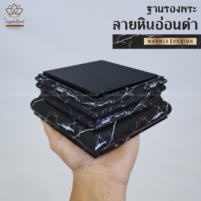 ฐานรองพระ ลายหินอ่อนสีดำ ใบบุญเฟอร์นิเจอร์ พรอพถ่ายรูปสินค้า ฐานโมเดล สูง 2.5 นิ้ว [ B006-8 ]