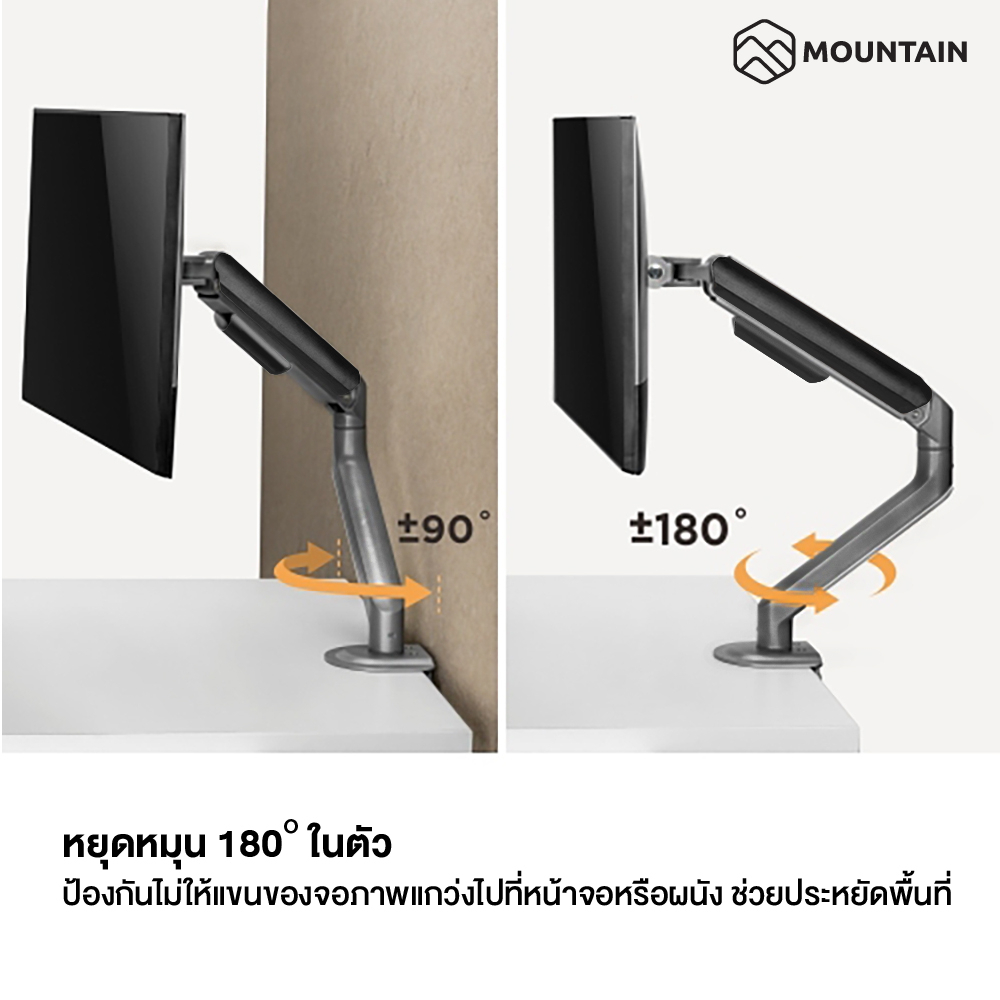 Mountain ขาตั้งจอคอม ขาตั้งจอมอนิเตอร์ RISE UP Series รุ่น MO-63BK-2M Spring Assisted Monitor Arm