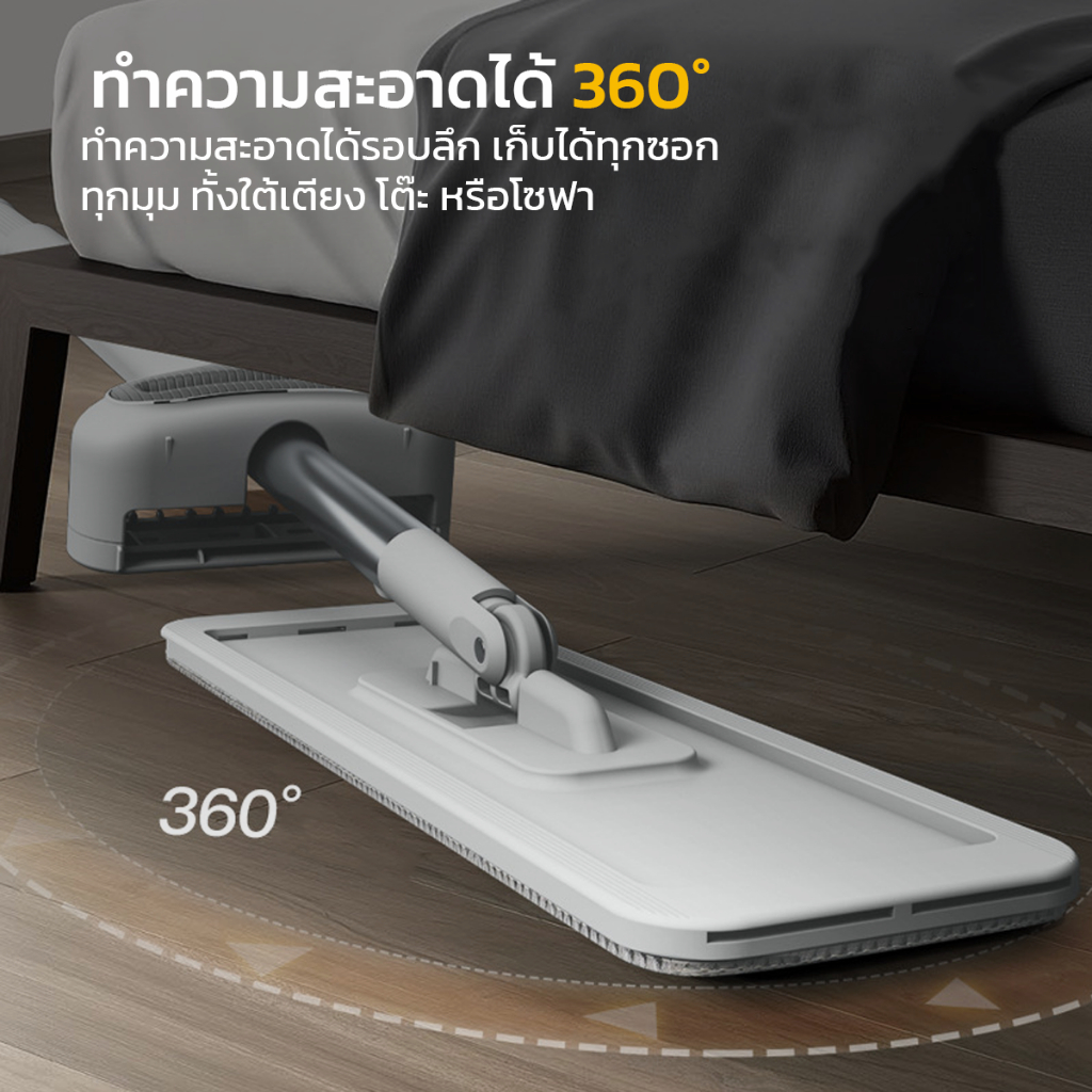 HOMEC ไม้ถูพื้นรีดน้ำ ไม้ม๊อบถูพื้น หมุนได้ 360องศา เก็บง่าย ประหยัดพื้นที่ รีดน้ำในตัว