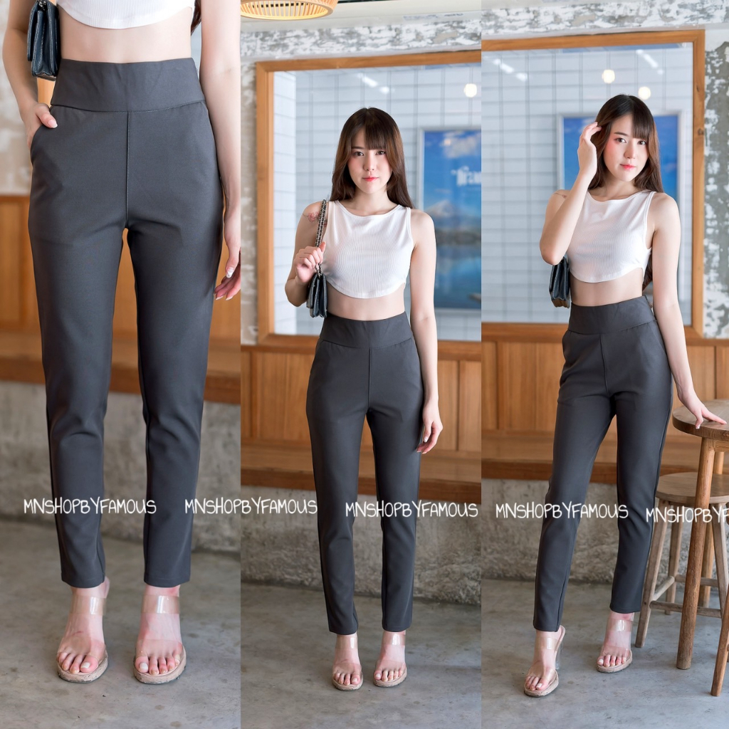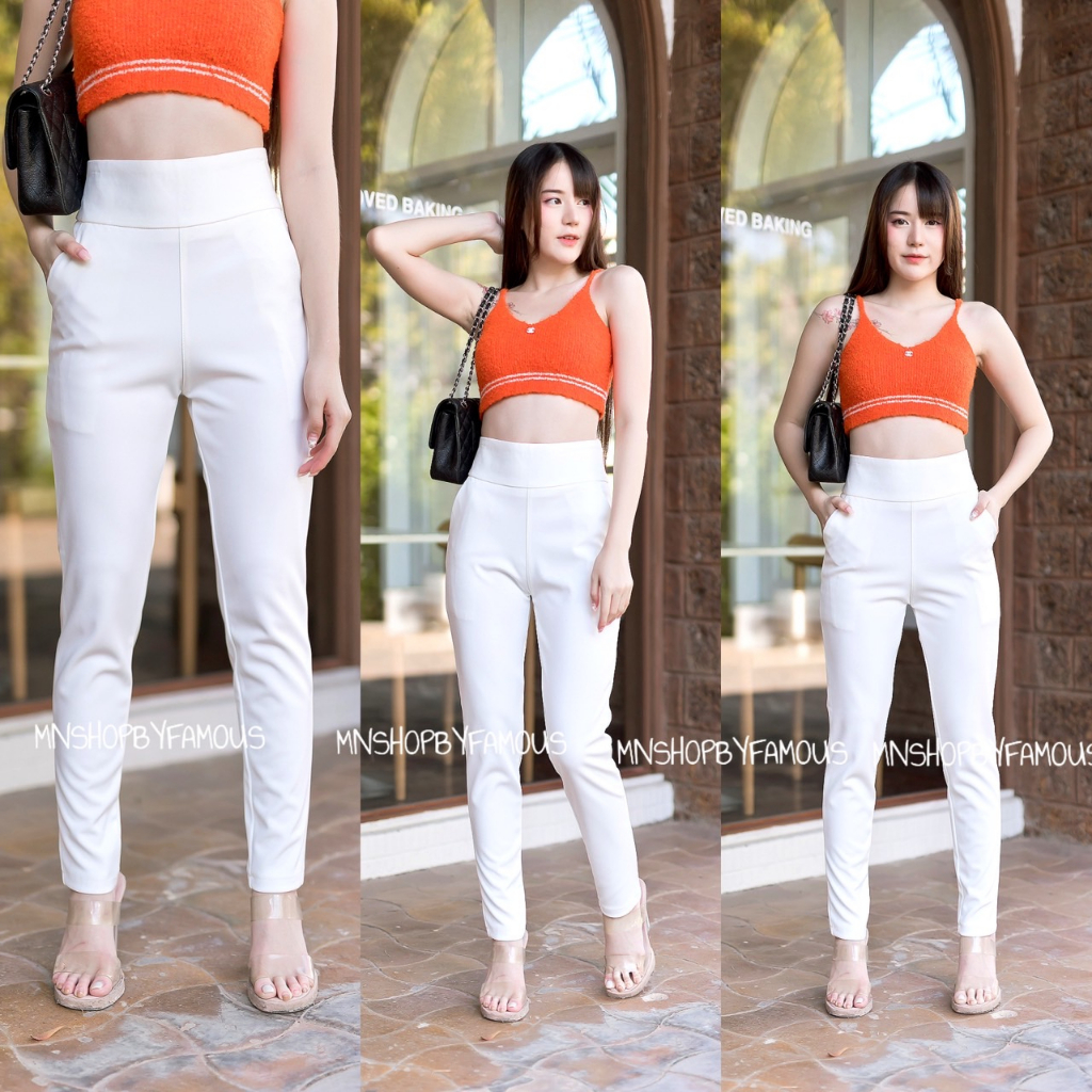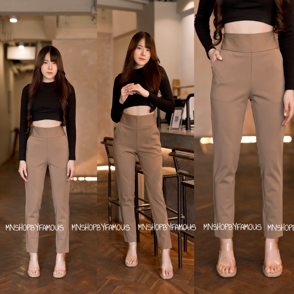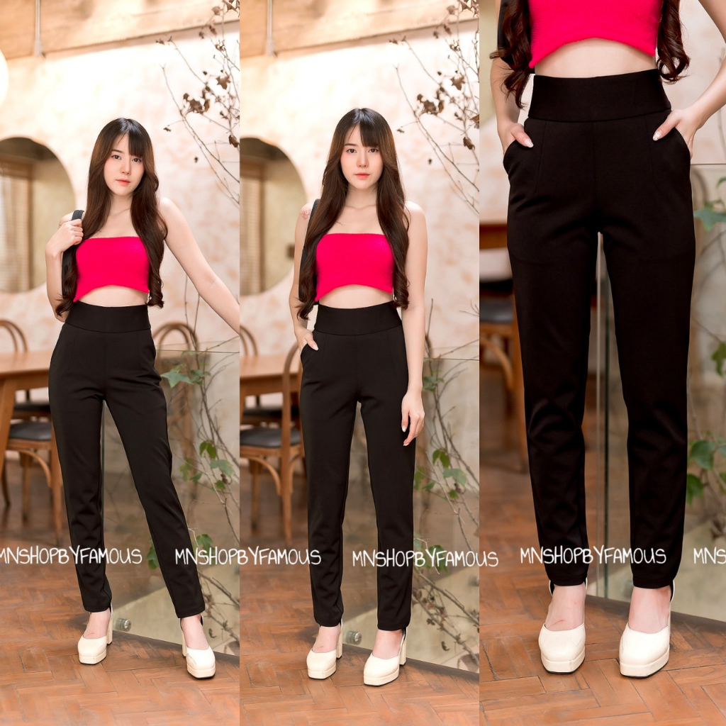🍒ขอบใหญ่🍒กางเกงผ้าโรเซฟ-ขอบใหญ่-เอวสูง 🛍️งานป้าย FAMOUS ไซส์S-34🚚📦 พร้อมส่ง