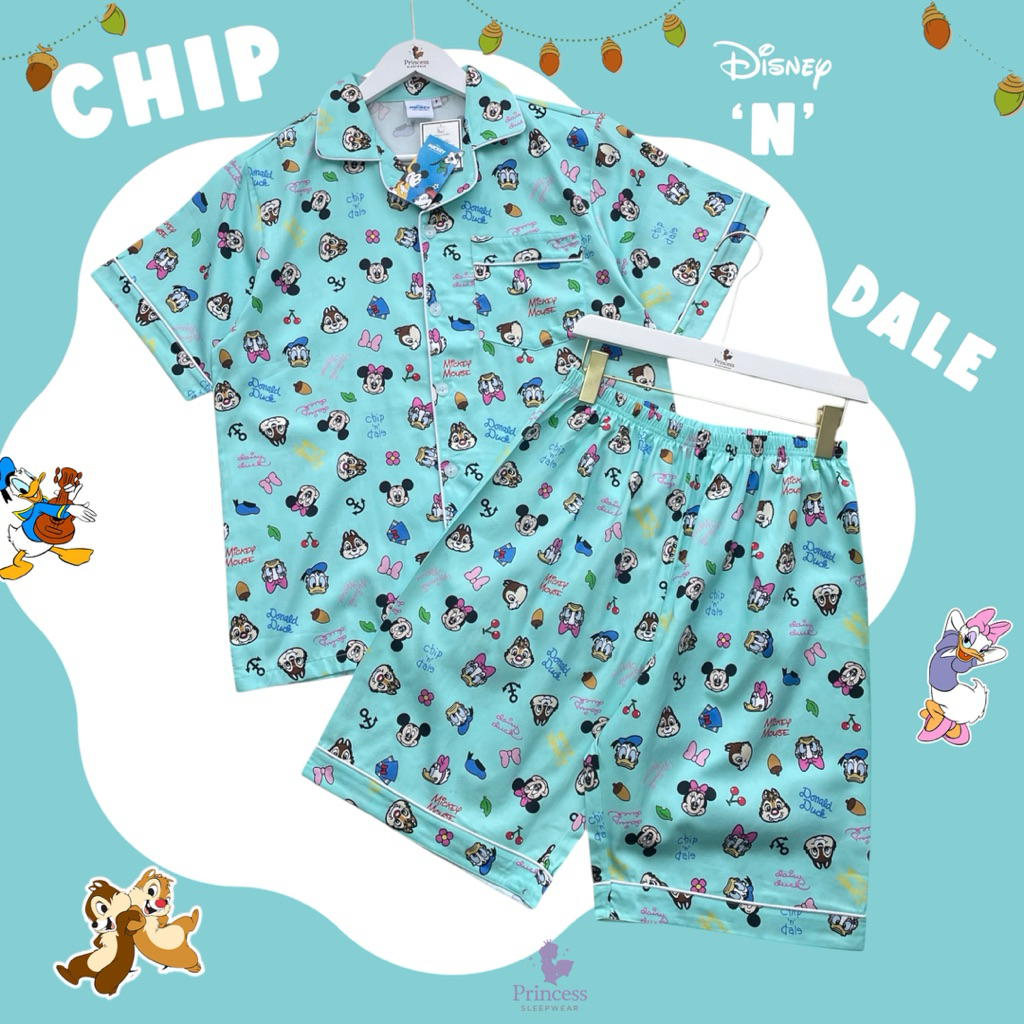 ชุดนอน ผ้าคอตตอนซาติน ชิพเดล Mickey Minnie & Chip n' dale รอบอก42“ ลิขสิทธิ์แท้