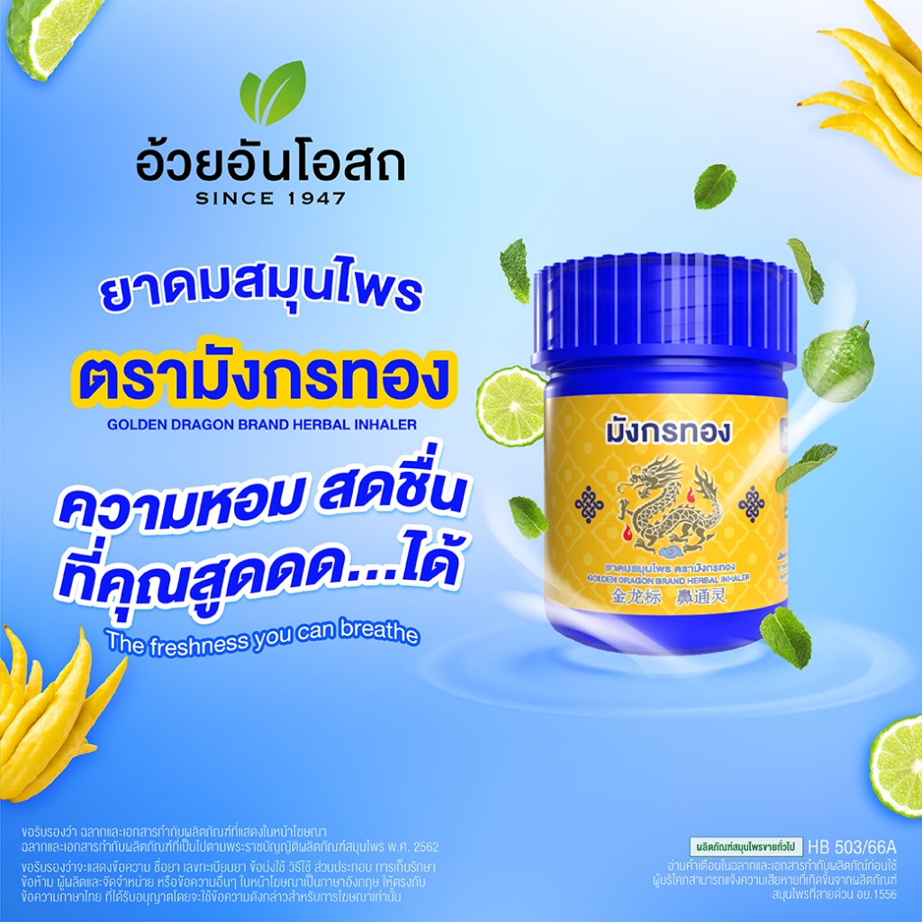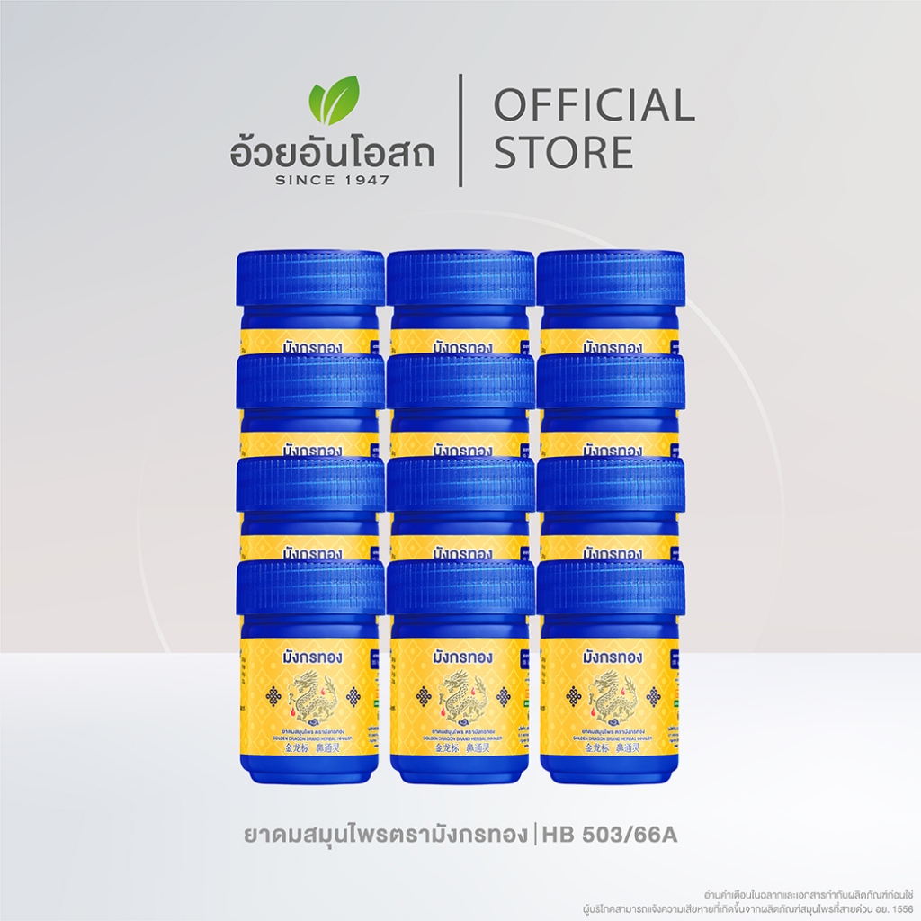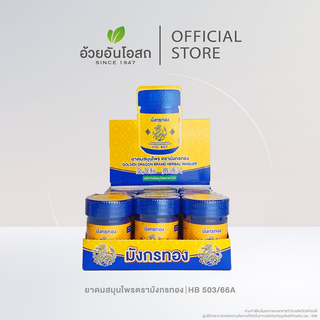 ยาดมสมุนไพรตรามังกรทอง [1กล่อง - 12 หลอด] อ้วยอันโอสถ Golden Dragon brand herbal inhaler