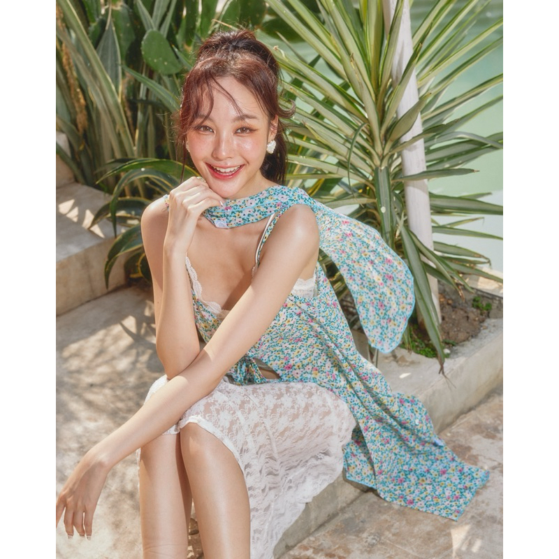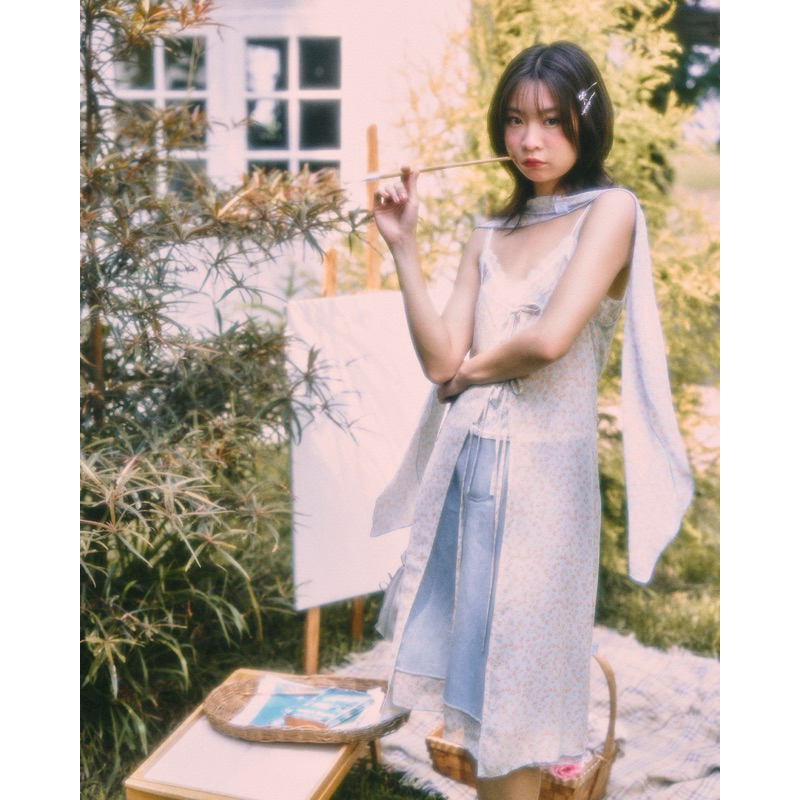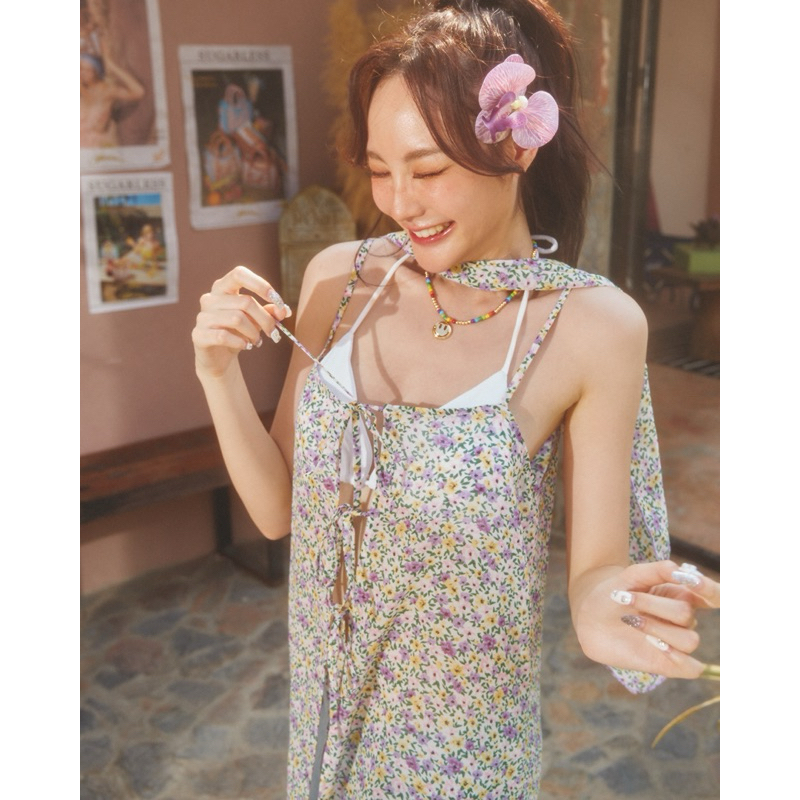 POKEE CHIFFON เดรสซีทรู พิมพ์ลายดอกไม้จิ๋ว